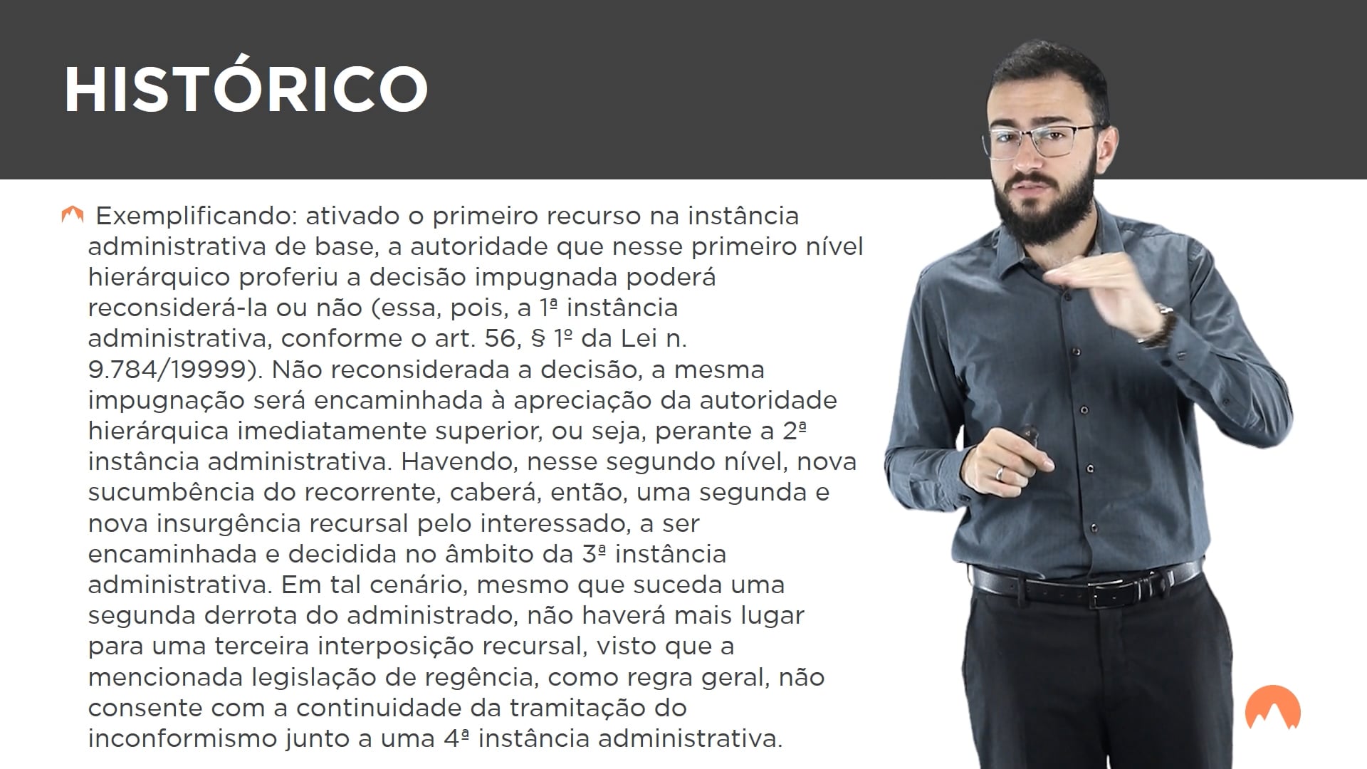 Exemplificando: ativado o primeiro recurso na instância administrativa de base, a autoridade que nesse primeiro nível hierárquico proferiu a decisão impugnada poderá reconsiderá-la ou não (essa, pois, a 1ª instância administrativa, conforme o art. 56, § 1º da Lei n. 9.784/19999). Não reconsiderada a decisão, a mesma impugnação será encaminhada à apreciação da autoridade hierárquica imediatamente superior, ou seja, perante a 2ª instância administrativa. Havendo, nesse segundo nível, nova sucumbência do recorrente, caberá, então, uma segunda e nova insurgência recursal pelo interessado, a ser encaminhada e decidida no âmbito da 3ª instância administrativa. Em tal cenário, mesmo que suceda uma segunda derrota do administrado, não haverá mais lugar para uma terceira interposição recursal, visto que a mencionada legislação de regência, como regra geral, não consente com a continuidade da tramitação do inconformismo junto a uma 4ª instância administrativa.