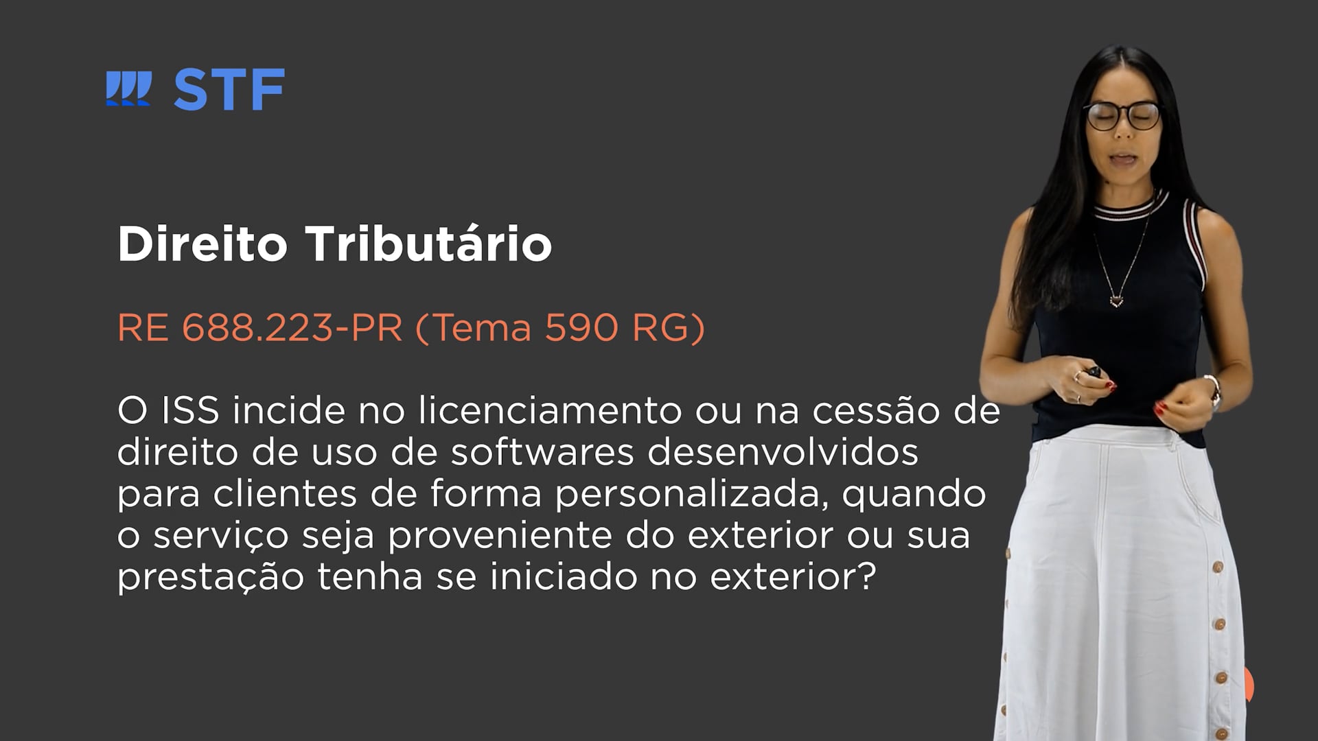 Incide o Imposto sobre serviços (ISS) no licenciamento ou na cessão de direito de uso de softwares desenvolvidos para clientes de forma personalizada, mesmo quando o serviço seja proveniente do exterior ou sua prestação tenha se iniciado no exterior.