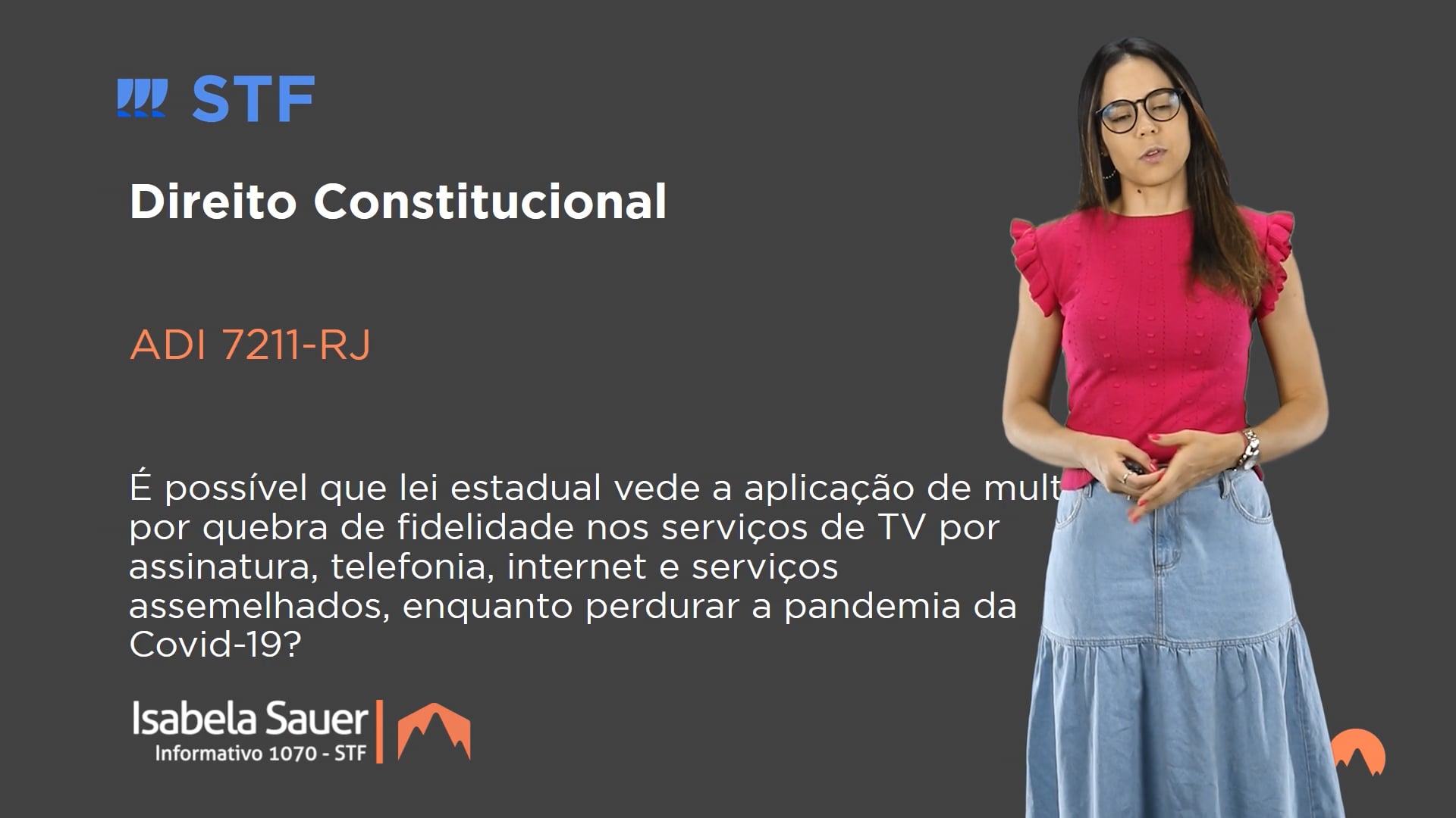 É inconstitucional, por ofensa à competência privativa da União para legislar sobre telecomunicações, lei estadual que veda a aplicação de multa por quebra de fidelidade nos serviços de TV por assinatura, telefonia, internet e serviços assemelhados, enquanto perdurar a pandemia da Covid-19.