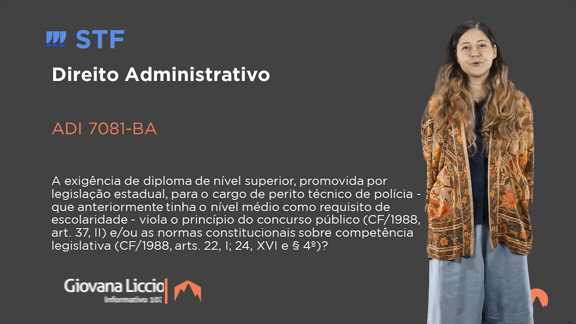 A exigência de diploma de nível superior, promovida por legislação estadual, para o cargo de perito técnico de polícia - que anteriormente tinha o nível médio como requisito de escolaridade - não viola o princípio do concurso público (CF/1988, art. 37, II) nem as normas constitucionais sobre competência legislativa (CF/1988, arts. 22, I; 24, XVI e § 4º).