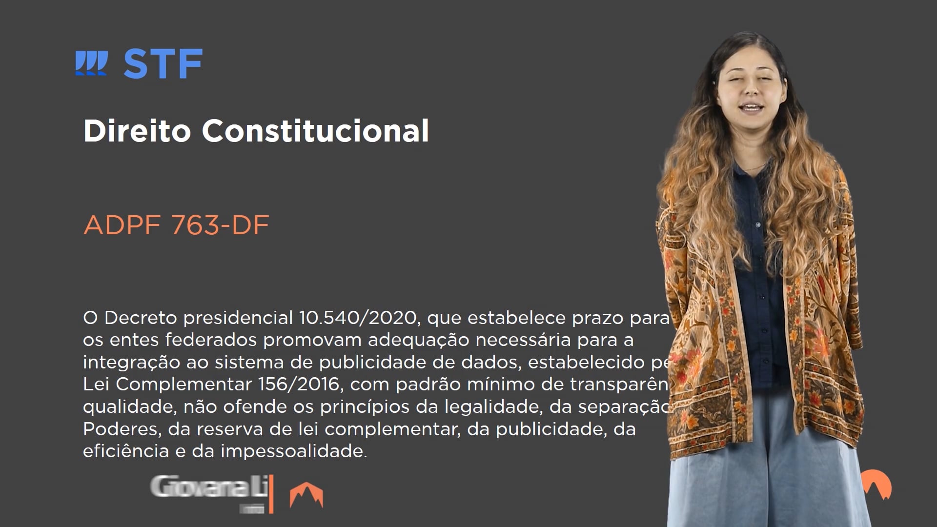 O Decreto presidencial 10.540/2020, que estabelece prazo para que os entes federados promovam adequação necessária para a integração ao sistema de publicidade de dados, estabelecido pela Lei Complementar 156/2016, com padrão mínimo de transparência e qualidade, não ofende os princípios da legalidade, da separação dos Poderes, da reserva de lei complementar, da publicidade, da eficiência e da impessoalidade.