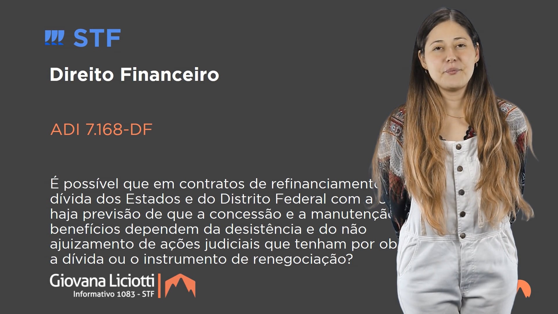 É constitucional — por ausência de ofensa aos princípios da inafastabilidade da jurisdição e aos postulados da razoabilidade e da proporcionalidade — dispositivo legal que, nos contratos de refinanciamento das dívidas dos estados e do Distrito Federal com a União, impõe como condição para a concessão e a manutenção dos benefícios previstos na lei a desistência e o não ajuizamento de ações judiciais que tenham por objeto a dívida ou o contrato renegociado.