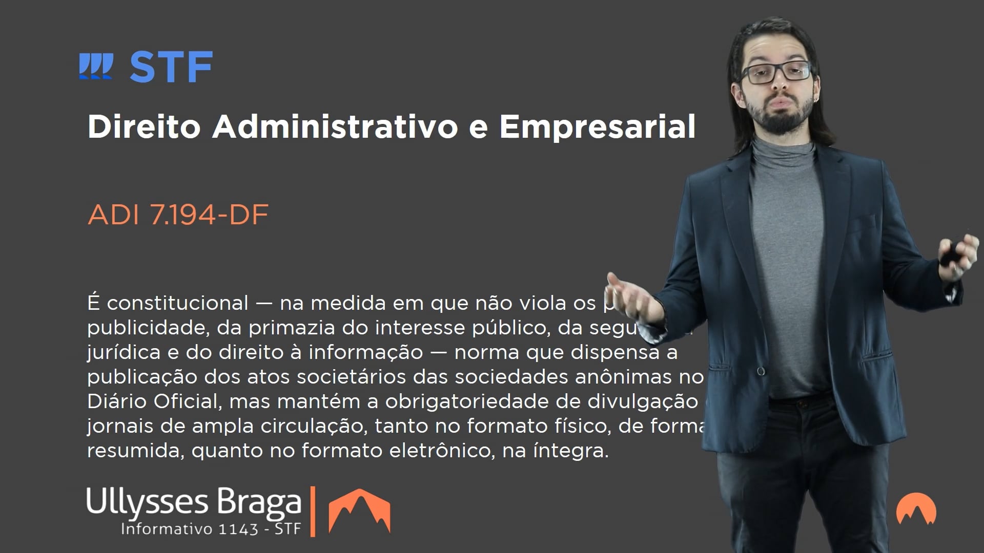 É constitucional — na medida em que não viola os princípios da publicidade, da primazia do interesse público, da segurança jurídica e do direito à informação — norma que dispensa a publicação dos atos societários das sociedades anônimas no Diário Oficial, mas mantém a obrigatoriedade de divulgação em jornais de ampla circulação, tanto no formato físico, de forma resumida, quanto no formato eletrônico, na íntegra.