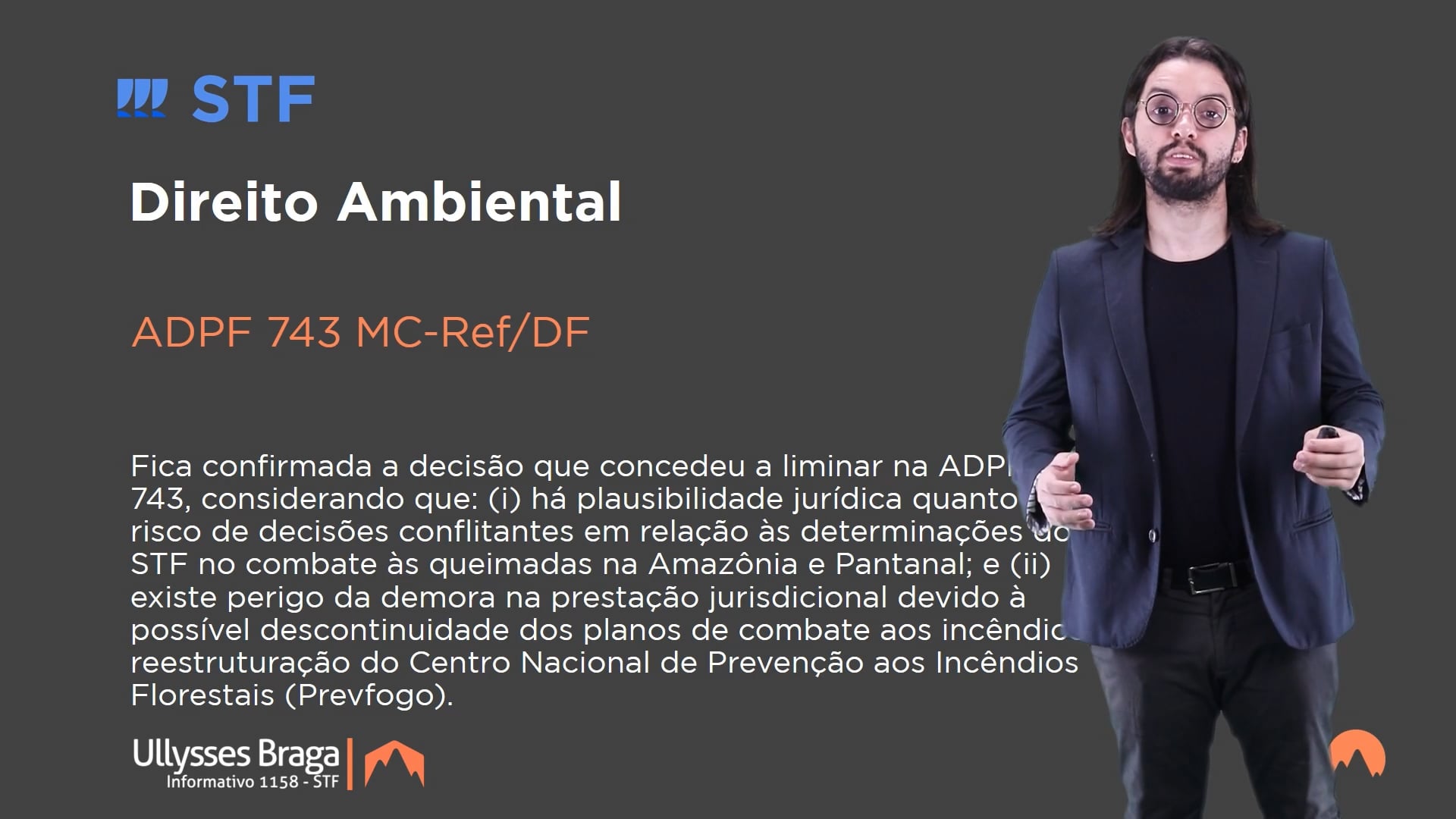 Fica confirmada a decisão que concedeu a liminar na ADPF nº 743, considerando que: (i) há plausibilidade jurídica quanto ao risco de decisões conflitantes em relação às determinações do STF no combate às queimadas na Amazônia e Pantanal; e (ii) existe perigo da demora na prestação jurisdicional devido à possível descontinuidade dos planos de combate aos incêndios e reestruturação do Centro Nacional de Prevenção aos Incêndios Florestais (Prevfogo).