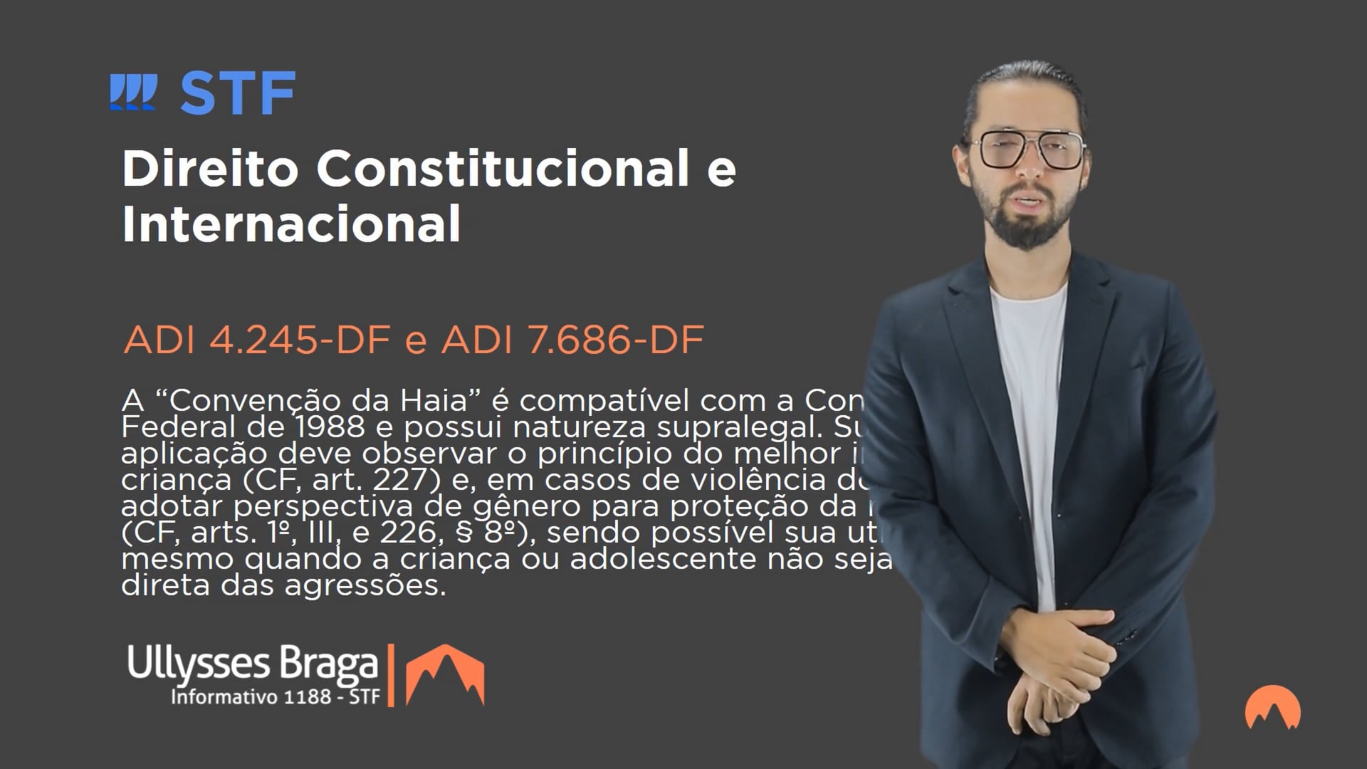 Com base nesses e em outros entendimentos, o Plenário, em apreciação conjunta, julgou, por unanimidade, parcialmente procedente a ADI 4.245/DF e, por maioria, parcialmente procedente a ADI 7.686/DF, para: (i) conferir interpretação conforme a Constituição ao art. 13, 1-b da Convenção da Haia de 1980 (Decreto nº 3.413/2000) e, por conseguinte, reconhecer que a exceção ao retorno imediato da criança por risco grave à sua integridade física, psíquica ou situação intolerável aplica-se aos casos de violência doméstica, mesmo que o menor não seja vítima direta e desde que demonstrados indícios objetivos e concretos da situação de risco, tudo em consonância com o princípio do melhor interesse da criança e da perspectiva de gênero; (ii) determinar, nos termos da respectiva ata de julgamento, uma série de medidas estruturais e procedimentais com a finalidade de combater a morosidade nos processos referentes à Convenção da Haia acerca da subtração internacional de crianças; e (iii) fixar a tese anteriormente citada