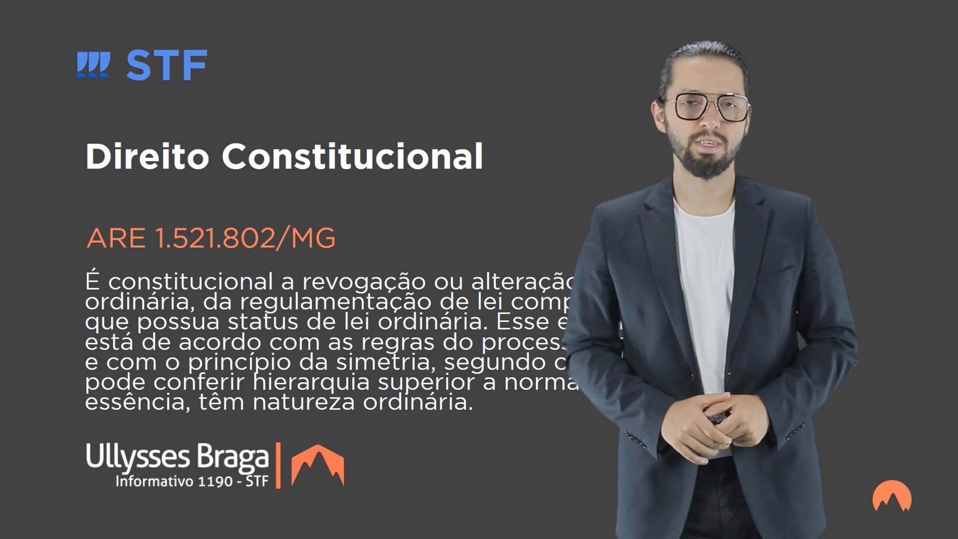 É constitucional — e está em consonância com as regras do processo legislativo e com o princípio da simetria — a revogação ou alteração, por lei ordinária, da regulamentação de lei complementar, quando esta possuir status de lei ordinária.