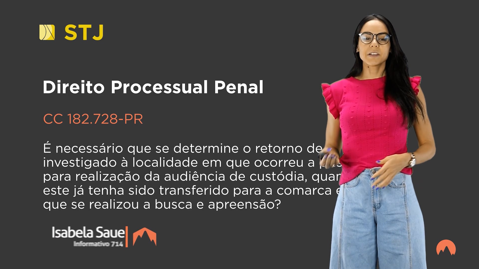 Nos termos da jurisprudência do STJ, a audiência de custódia deve ser realizada na localidade em que ocorreu a prisão.
