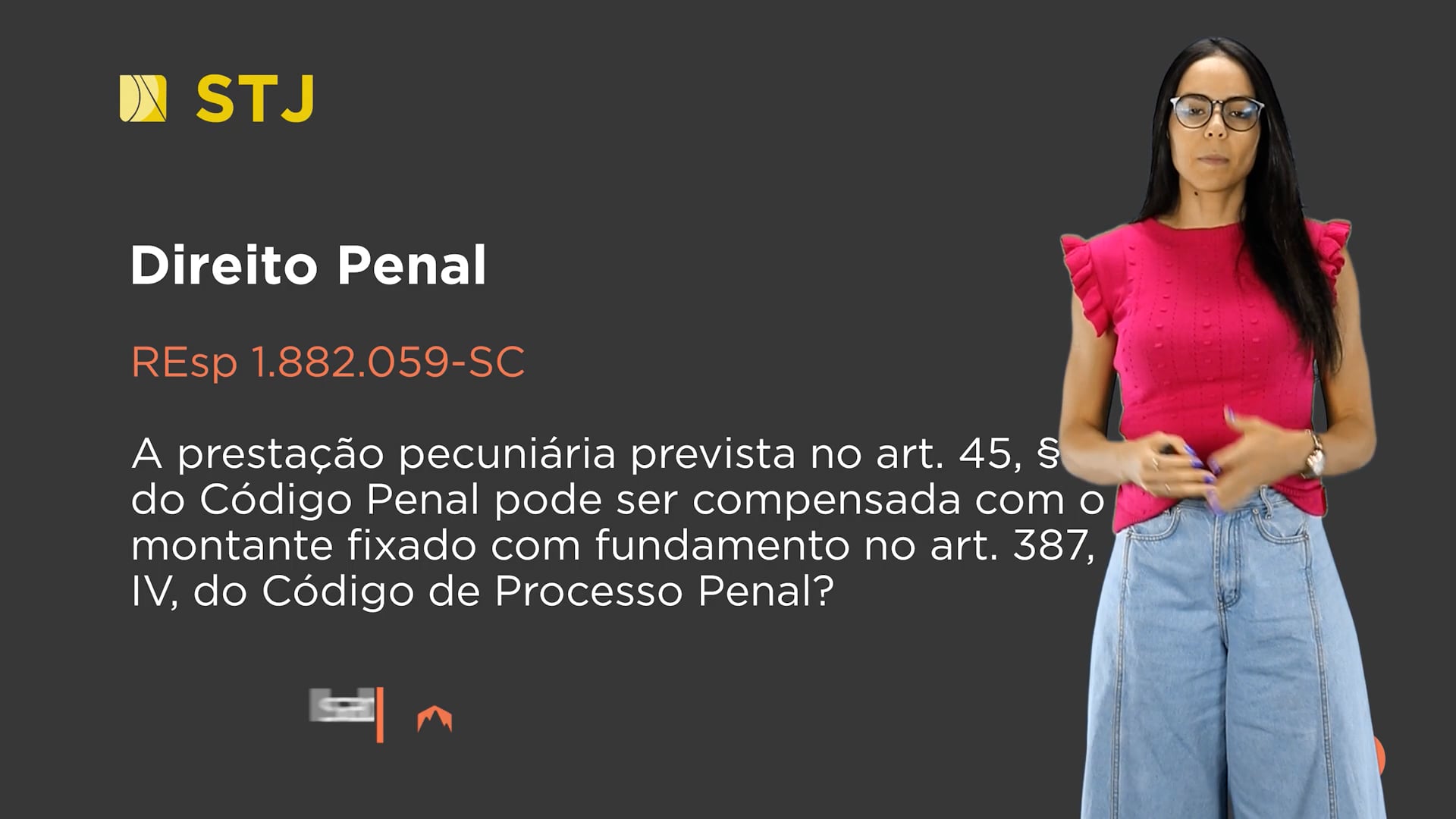 Nesse contexto, é necessário o estudo particularizado dos institutos da prestação pecuniária (art. 45, § 1º, do CP) e da reparação dos danos causados pela infração (art. 387, IV, do CPP) para determinar se é possível a compensação.