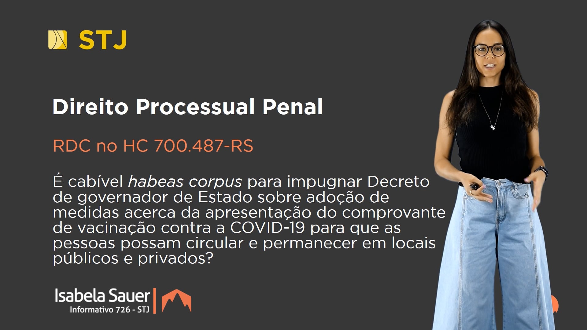 O Habeas corpus não constitui via própria para impugnar Decreto de governador de Estado sobre adoção de medidas acerca da apresentação do comprovante de vacinação contra a COVID-19 para que as pessoas possam circular e permanecer em locais públicos e privados.