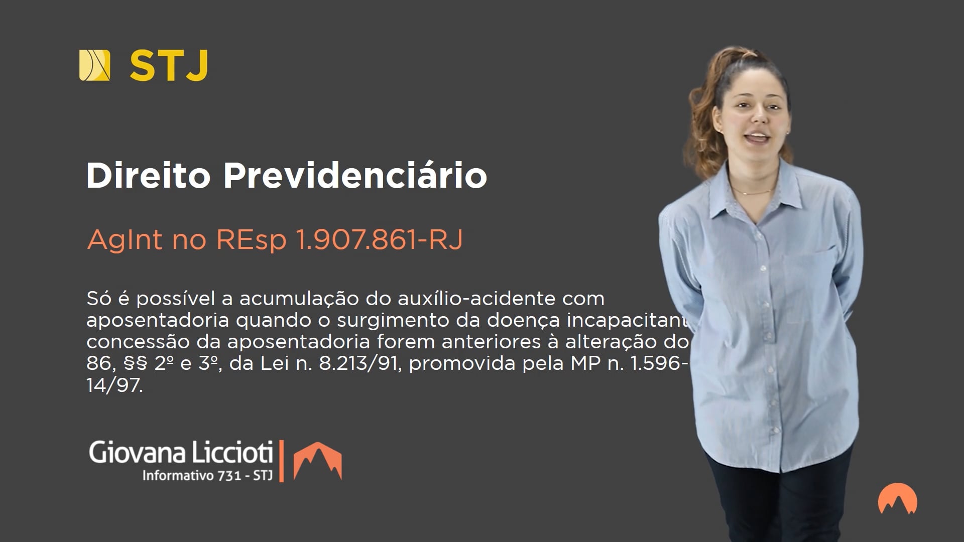 Por fim, frisa-se que tal entendimento foi ratificado com a publicação da Súmula 507/STJ, in verbis: "A acumulação de auxílio-acidente com aposentadoria pressupõe que a lesão incapacitante e a aposentadoria sejam anteriores a 11/11/1997, observado o critério do art. 23 da Lei n. 8.213/1991 para definição do momento da lesão nos casos de doença profissional ou do trabalho".