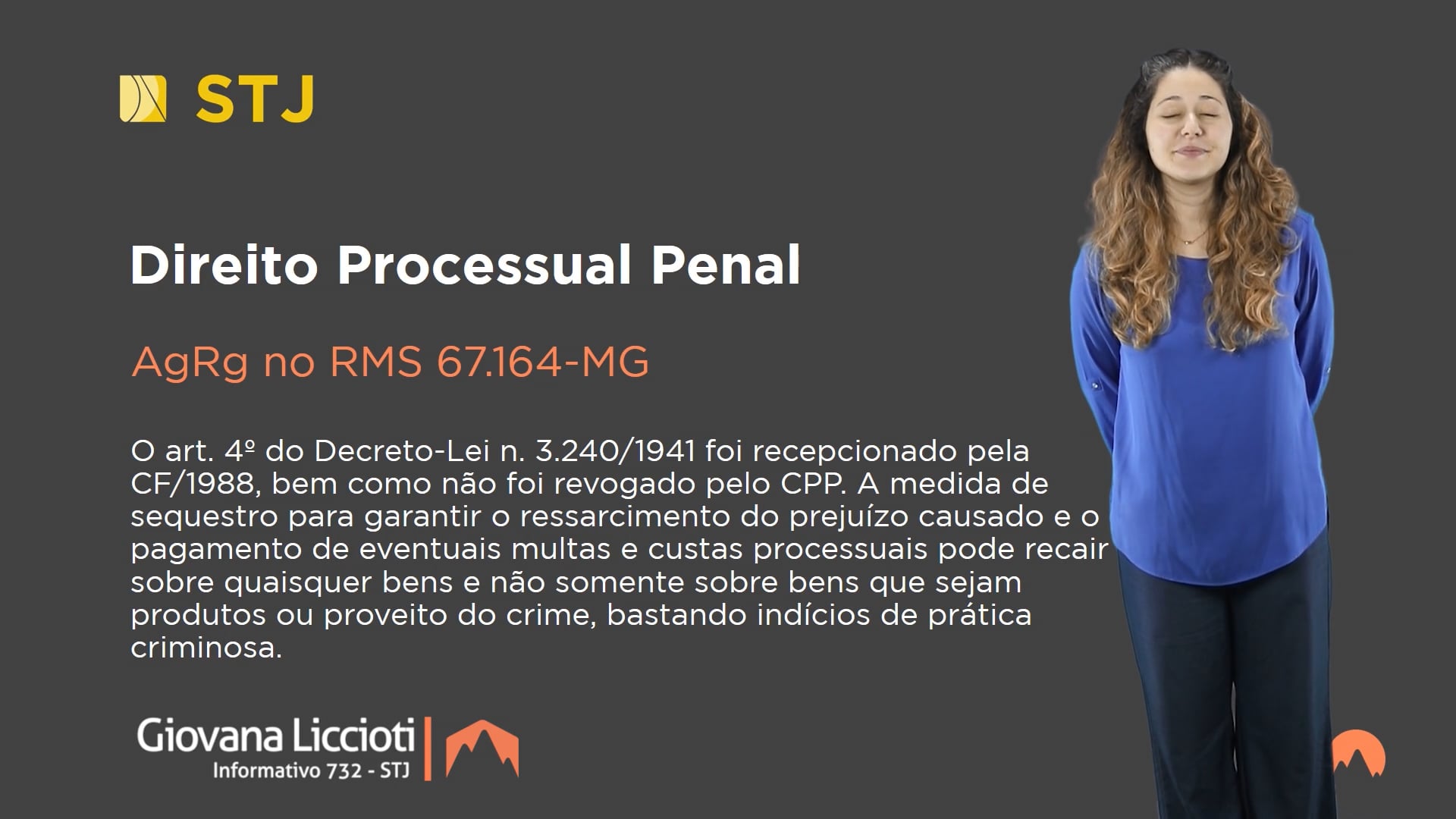 Vale ressaltar que a medida de sequestro, a teor do art. 4º do Decreto-Lei n.º 3.240/1941, pode recair sobre quaisquer bens dos requerentes e não apenas sobre aqueles que sejam produtos ou proveito do crime (RMS 29.854/RJ Rel. Ministro Nefi Cordeiro, 6ª Turma, julgado em 01/10/2015, DJe 26/10/2015).