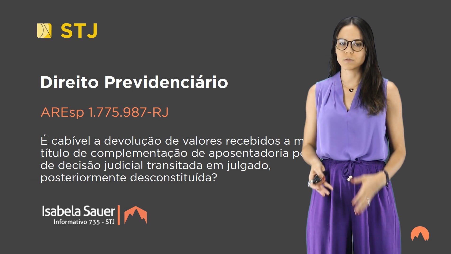Cumpre consignar que, com relação especificamente à Previdência Privada, a devolução de valores pagos a título de benefício previdenciário complementar por força de decisão judicial, posteriormente revogada ou rescindida, o entendimento das Turmas de Direito Privado se amparou, inicialmente, na jurisprudência do STJ que, para dirimir o debate acerca da devolução de valores recebidos por força de antecipação de tutela posteriormente revogada, quanto a benefícios previdenciários do Regime Geral de Previdência Social, utilizou-se da incidência do princípio da irrepetibilidade dos alimentos.