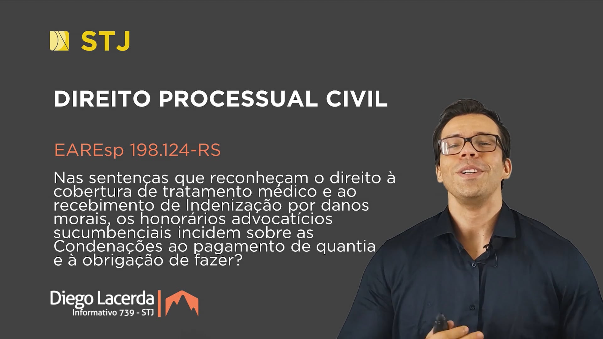Por sua vez, o aresto indicado como paradigma, da Terceira Turma, assentou que "o título judicial que transita em julgado com a procedência dos pedidos de natureza cominatória (fornecer a cobertura pleiteada) e de pagar quantia certa (valor arbitrado na compensação dos danos morais) deve ter a sucumbência calculada sobre ambas condenações".