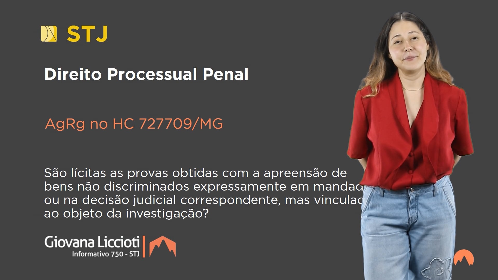 Cinge-se a controvérsia em determinar a licitude das provas obtidas com a apreensão de bens não discriminados expressamente em mandado ou decisão judicial correspondente, mas vinculados ao objeto da investigação.