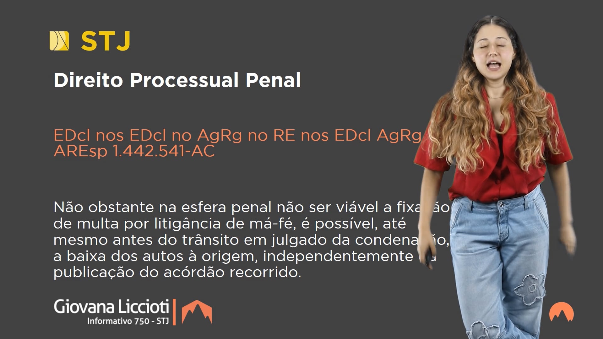Não obstante na esfera penal não ser viável a fixação de multa por litigância de má-fé, é possível, até mesmo antes do trânsito em julgado da condenação, a baixa dos autos à origem, independentemente da publicação do acórdão recorrido.