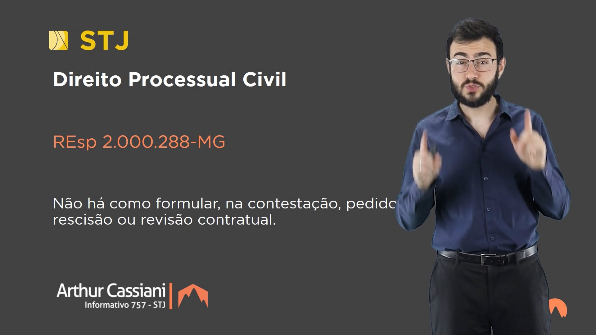 Não há como formular, na contestação, pedido de rescisão ou revisão contratual. Isso porque, sem reconvenção, o Juiz não pode julgar pedidos do réu quanto ao mérito e, por consequência, não pode decretar a rescisão do contrato e reconstituir o status quo ante ou revisar o contrato para alterar os direitos e as obrigações nele previstos.