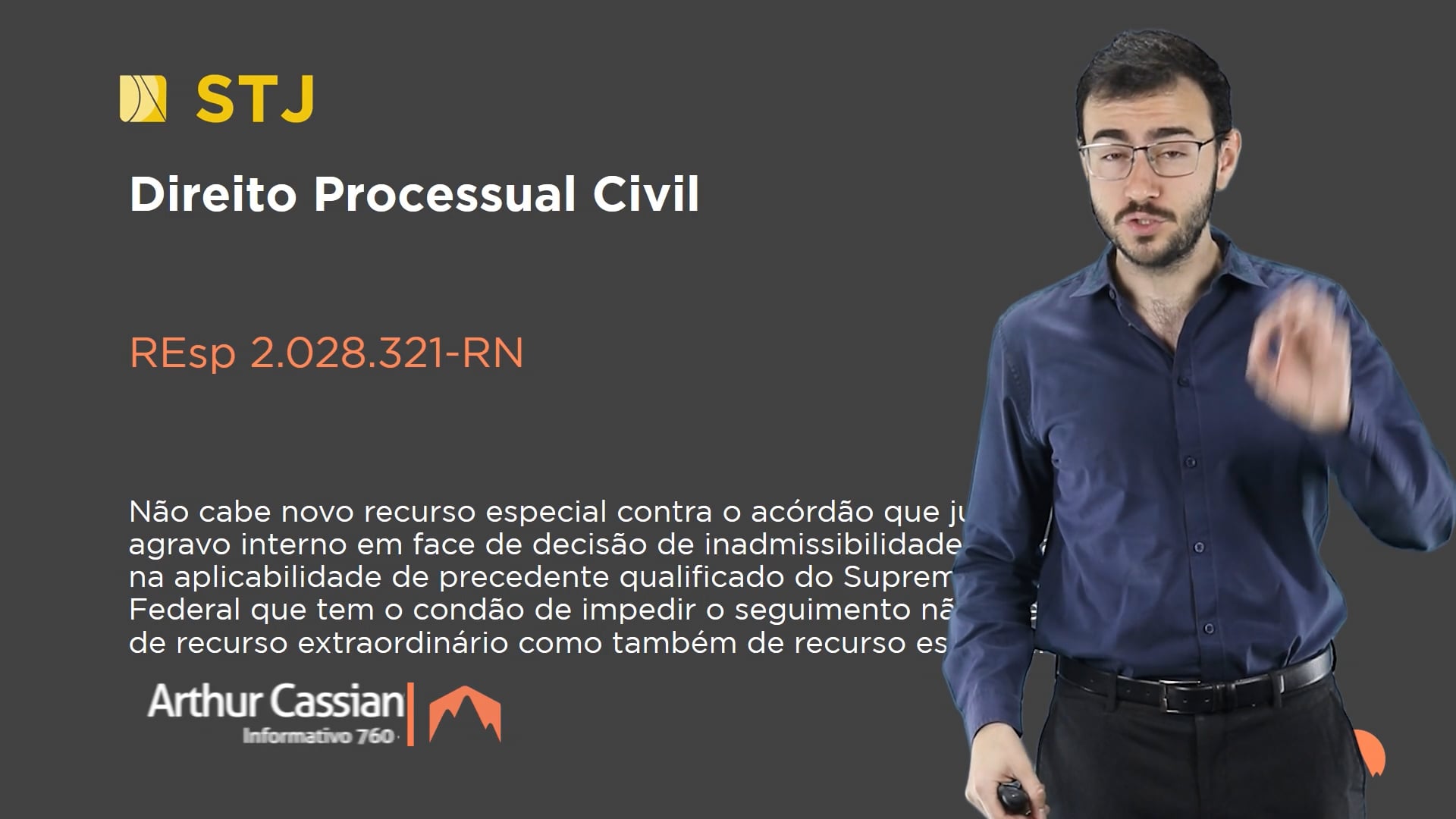 Em seguida a isso foram interpostos agravo em recurso especial e agravo em recurso extraordinário, mas no lugar de se determinar o processamento deles, com a remessa aos respectivos Tribunais, houve uma nova decisão monocrática em razão da qual se compreendeu que como a razão de inadmissibilidade estava fundada na aplicação de precedente qualificado o recurso cabível era o agravo interno em ambos os casos, e desse modo não se conheceu de ambos os agravos em recurso especial e em recurso extraordinário.