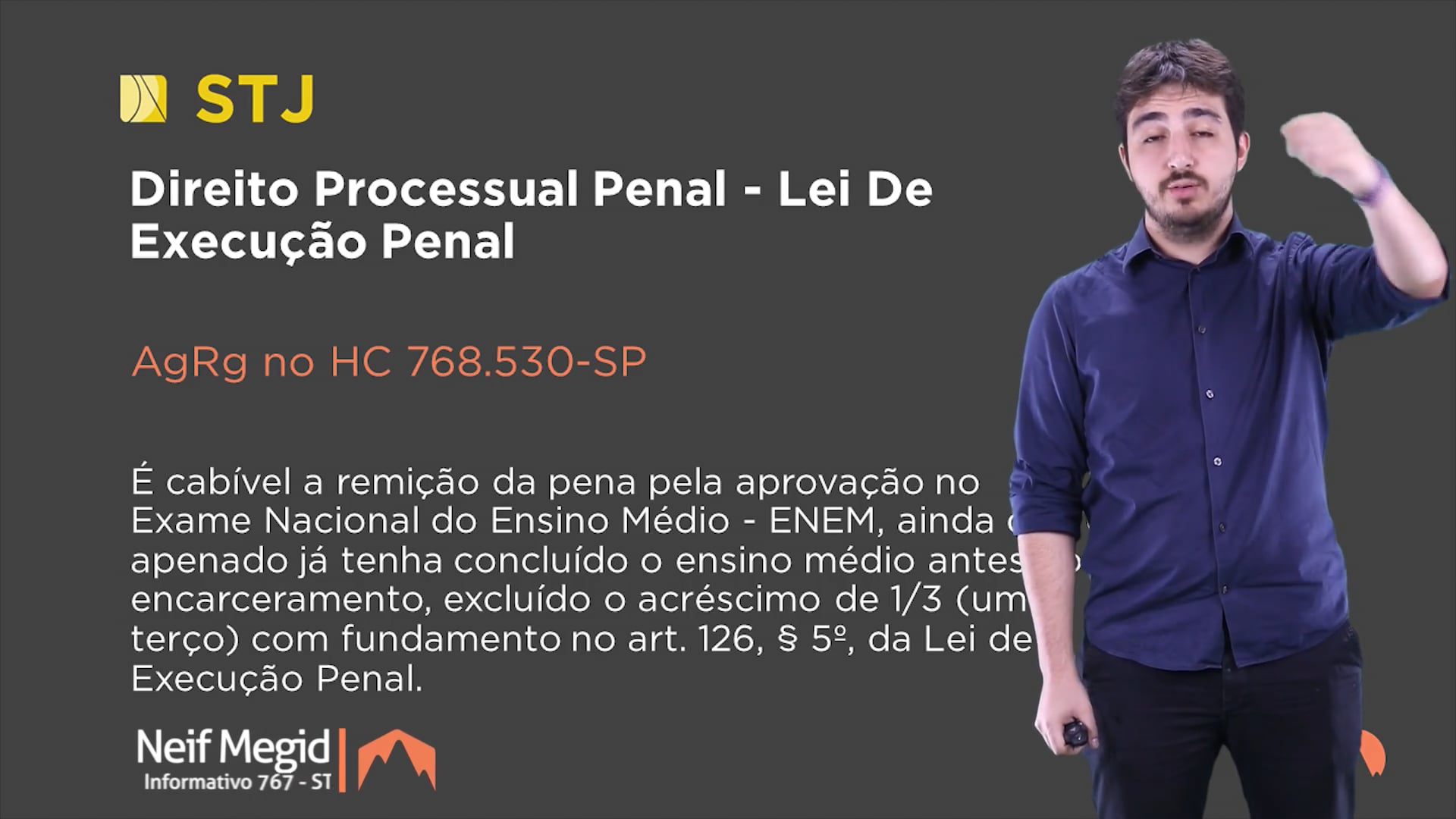 No entanto, em recente julgamento ocorrido (REsp 1.854.391/DF, Rel. Ministra Laurita Vaz, julgado em 22/9/2020, DJe 6/10/2020), decidiu a Sexta Turma que o direito à remição deve ser aplicado independentemente de o apenado ter concluído o ensino médio em momento anterior, uma vez que a aprovação no exame demandaria estudos por conta própria, mesmo para aqueles que, fora do ambiente carcerário, já possuíssem o referido grau de ensino.