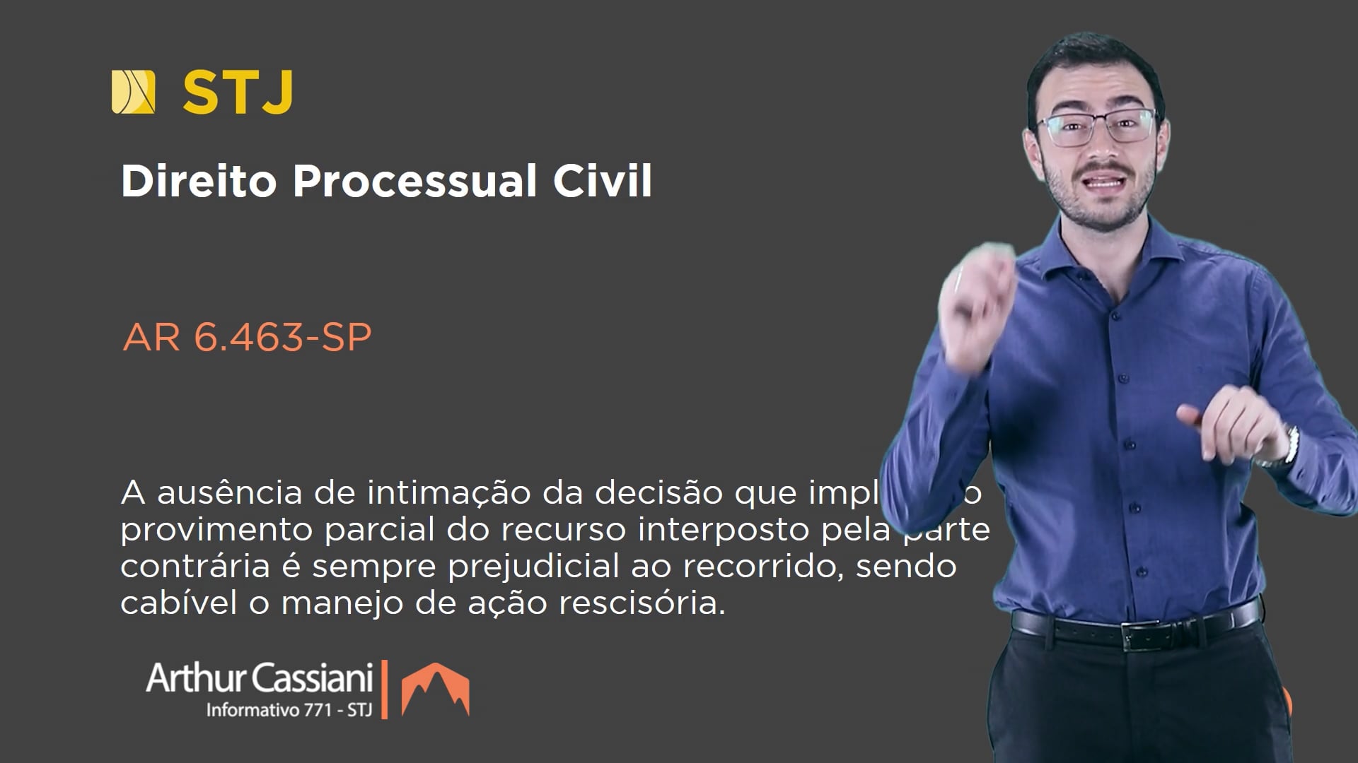A ausência de intimação da decisão que implicou o provimento parcial do recurso interposto pela parte contrária é sempre prejudicial ao recorrido, sendo cabível o manejo de ação rescisória.