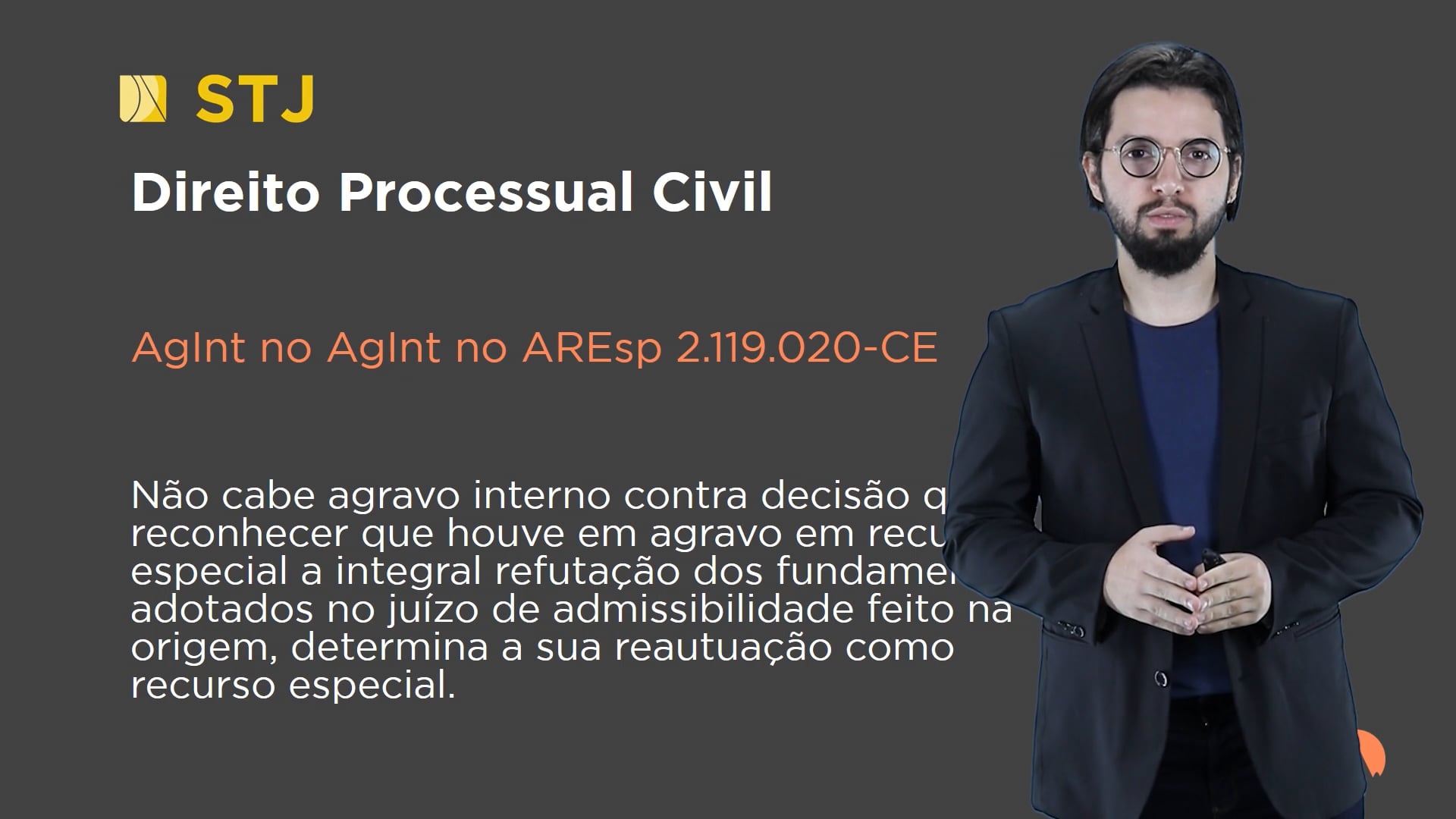 Não cabe agravo interno contra decisão que, ao reconhecer que houve em agravo em recurso especial a integral refutação dos fundamentos adotados no juízo de admissibilidade feito na origem, determina a sua reautuação como recurso especial.