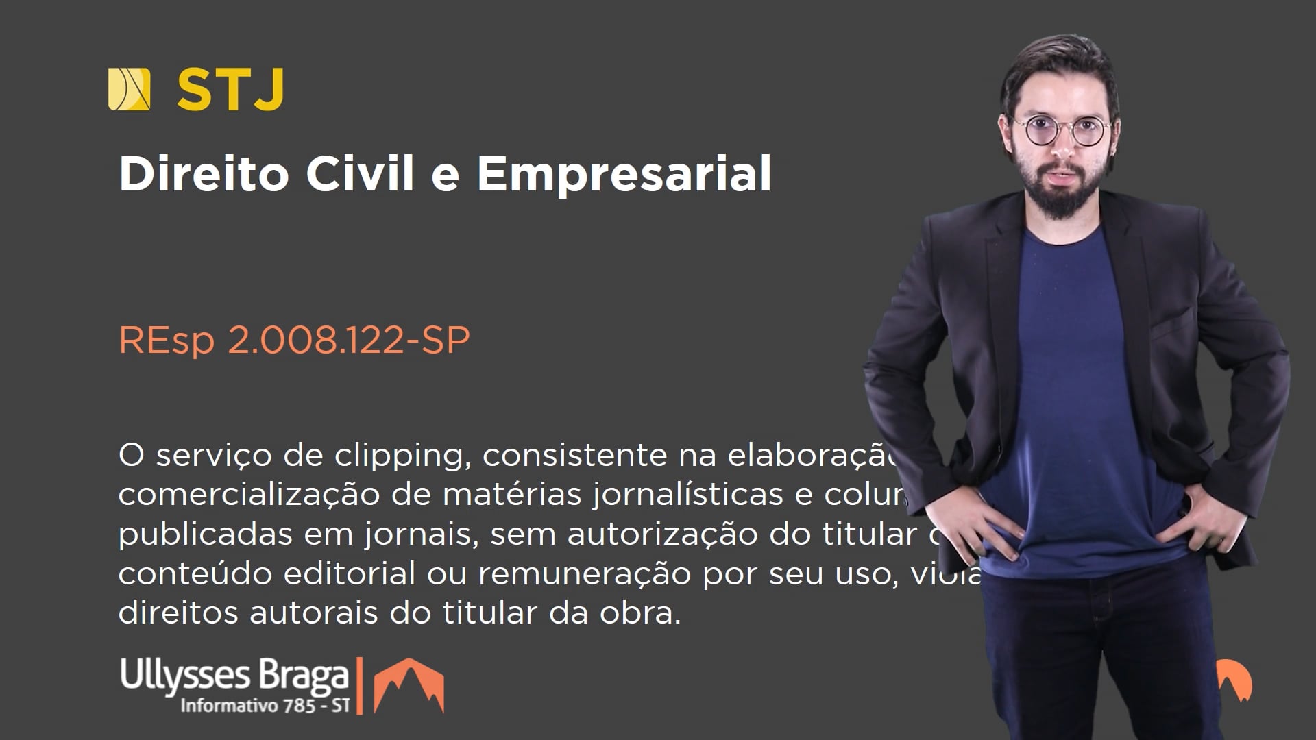 O serviço de clipping, consistente na elaboração e comercialização de matérias jornalísticas e colunas publicadas em jornais, sem autorização do titular do conteúdo editorial ou remuneração por seu uso, viola direitos autorais do titular da obra.