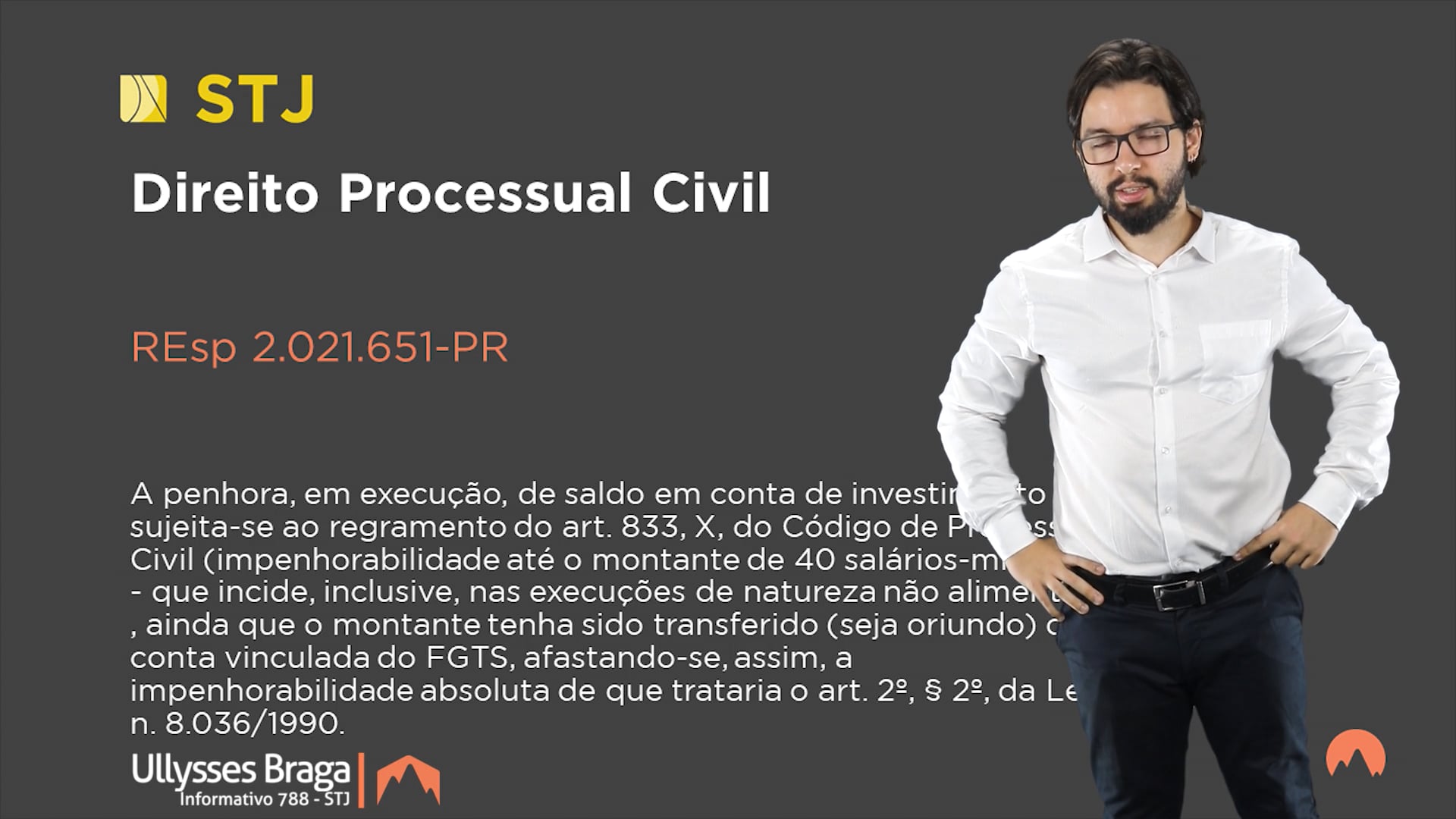 Contudo, tendo havido saque e transferência do saldo da conta vinculada, passa a incidir, no regramento sobre impenhorabilidade do saldo na outra conta (conta-investimento), o quanto disposto no inciso X do art. 833 do CPC, o que afasta a regra da impenhorabilidade com base na Lei n. 8.036/1990. O entendimento desta Corte é pela incidência da referida norma processual mesmo a contas de aplicação financeira.
