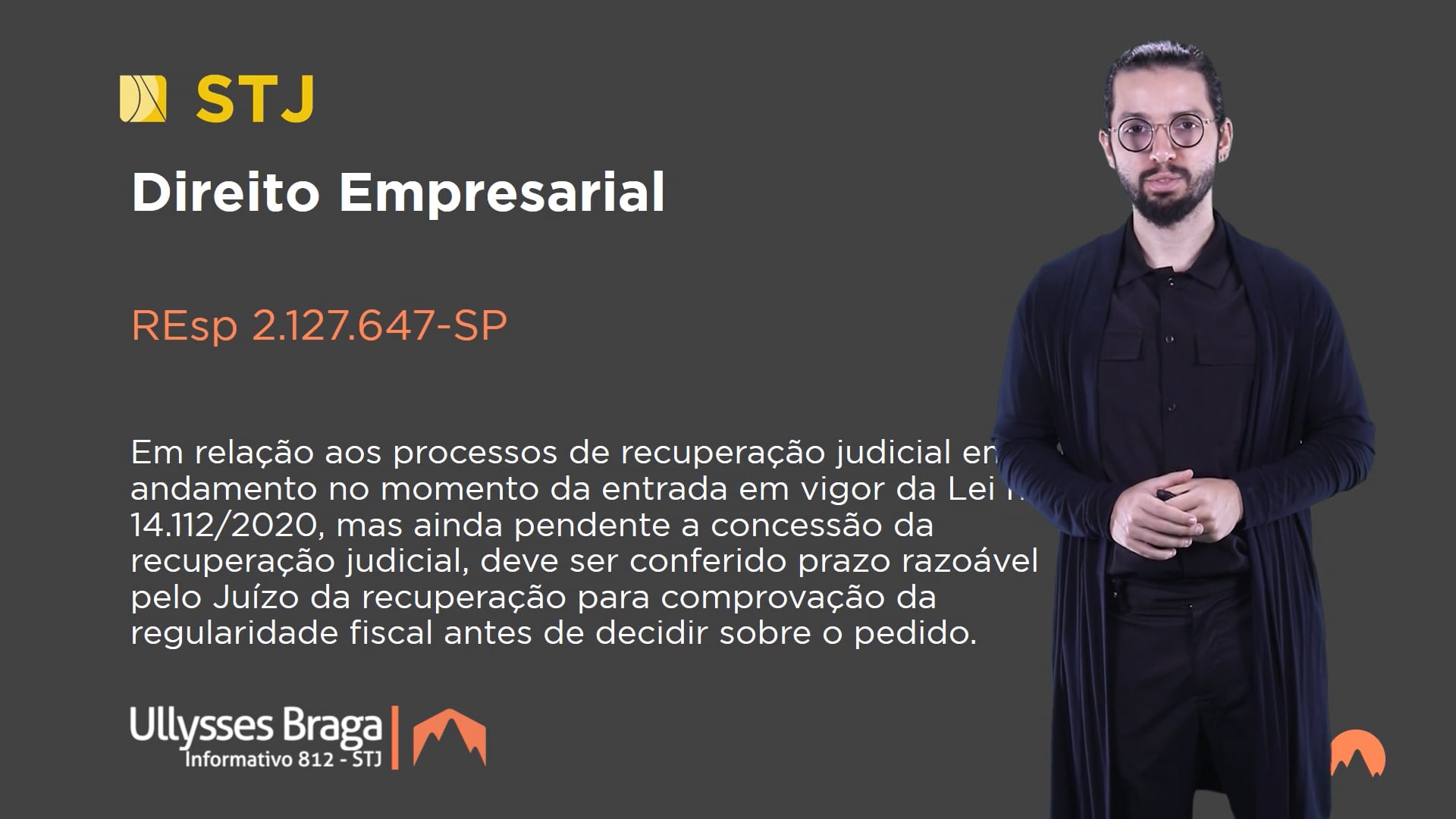 Esse foi o entendimento da Quarta Turma proferido no julgamento do outrora citado REsp n. 1.955.325-PE, dispondo que, "na hipótese de decisões homologatórias do plano de recuperação proferidas anteriormente à vigência da Lei n. 14.112/2020, aplica-se o entendimento jurisprudencial pretérito no sentido da inexigibilidade da comprovação da regularidade fiscal, forte no princípio tempus regit actum (art. 5º, XXXVI, da Constituição Federal e art. 6º da Lei de Introdução às Normas do Direito Brasileiro), de forma a não prejudicar o cumprimento do plano".