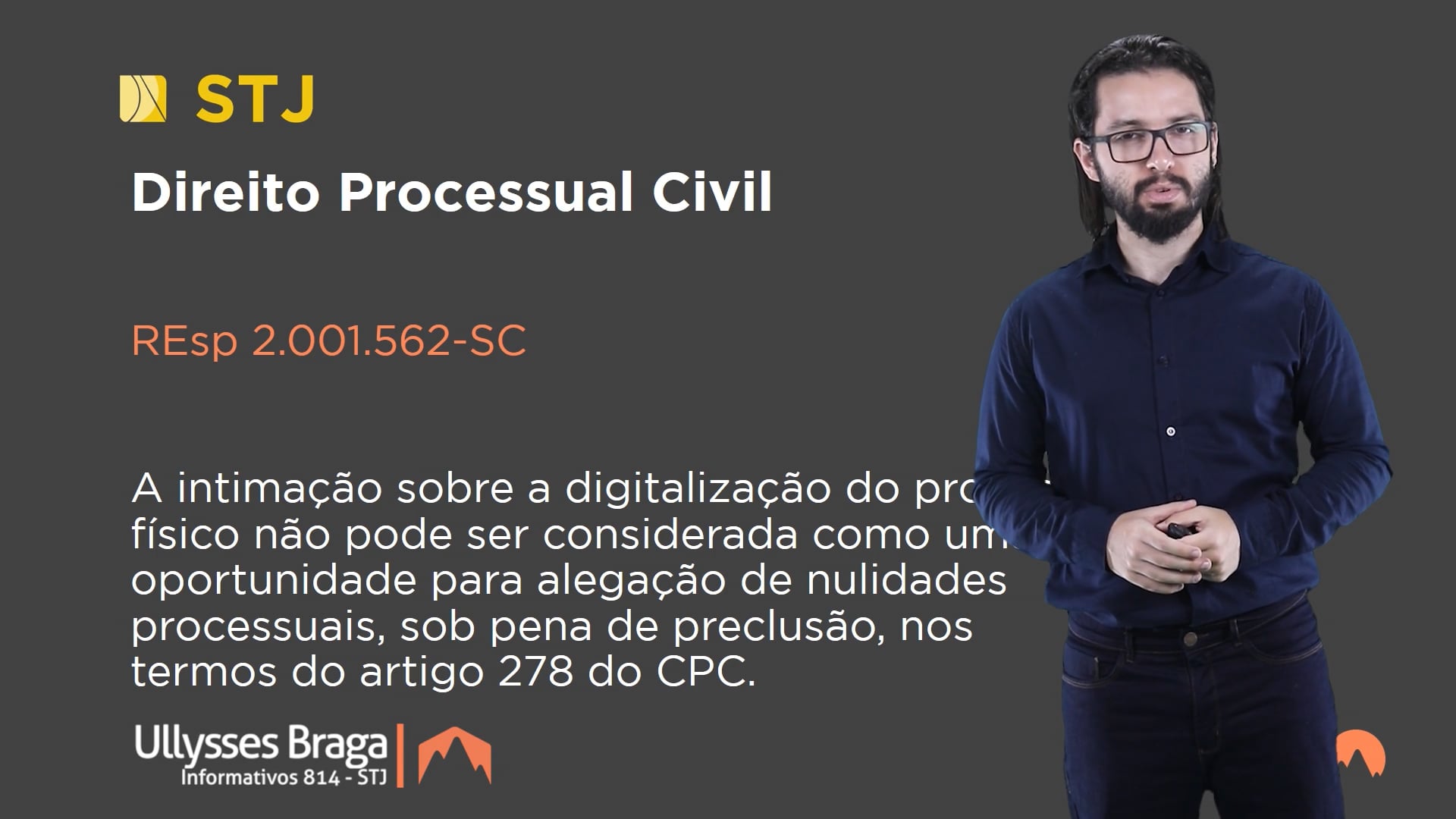 Nesse sentido, a comunicação dirigida às partes para informar que o processo foi digitalizado, transferindo-se do meio físico para o digital, não pode ser considerada, ao contrário do que concluiu o acórdão recorrido, como a "primeira oportunidade em que couber à parte falar nos autos, sob pena de preclusão".