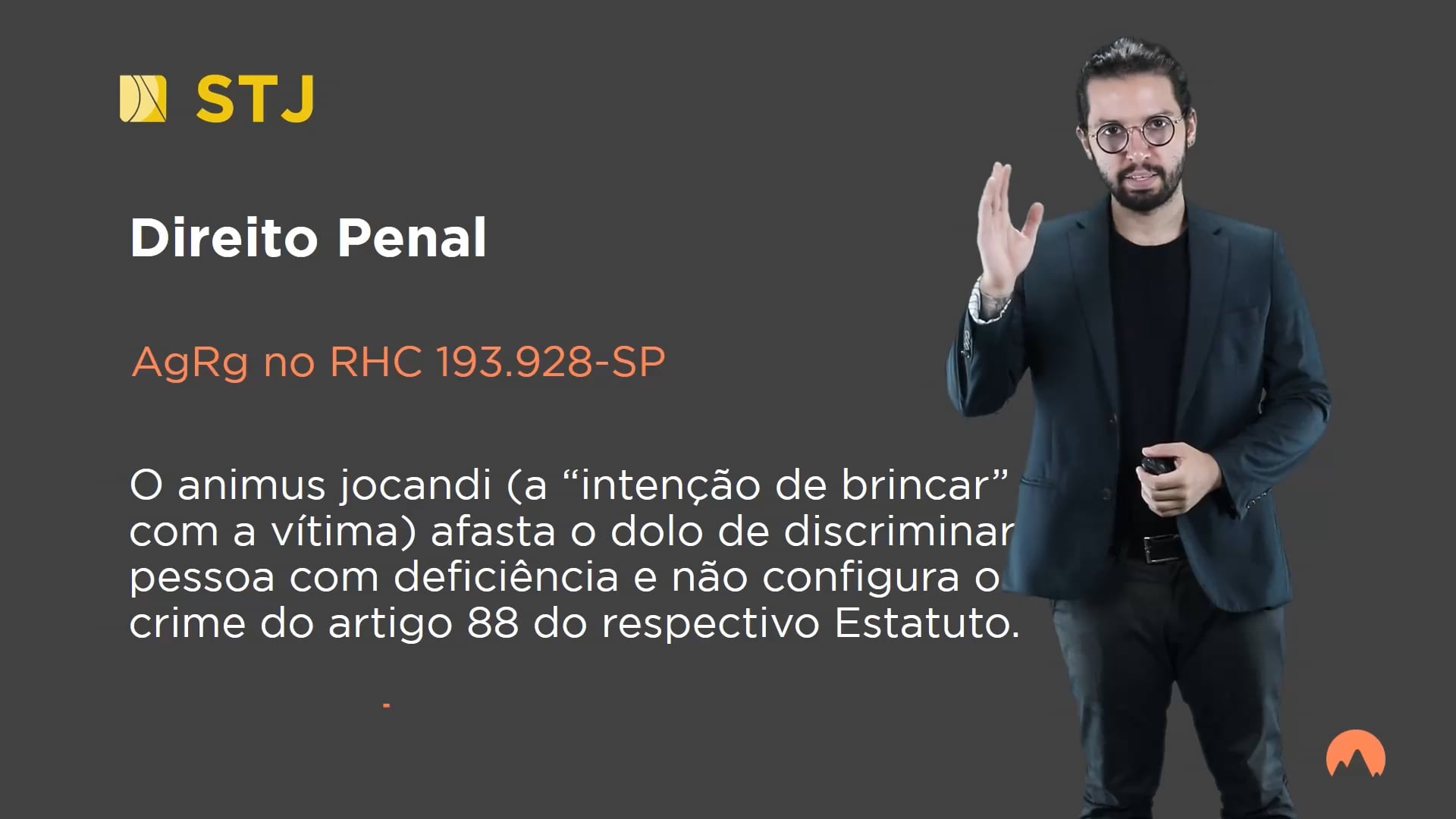 O animus jocandi (a “intenção de brincar” com a vítima) afasta o dolo de discriminar a pessoa com deficiência e não configura o crime do artigo 88 do respectivo Estatuto.