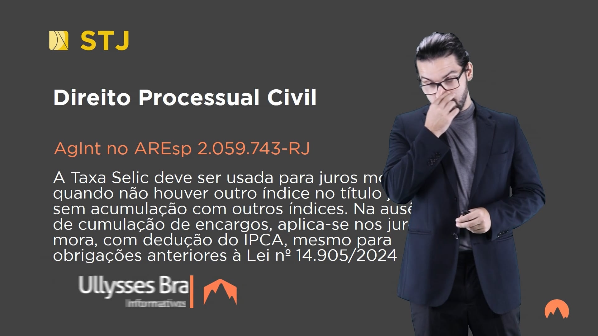 Para a solução desse tipo de questão, notadamente a partir do julgamento do REsp 1.795.982/SP pela Corte Especial, que reafirmou a interpretação conferida à matéria pelo STJ desde a edição do Código Civil de 2002, a Lei n. 14.905/2024 determinou a aplicação da Selic com o temperamento no sentido de que, quando no período não incidirem os encargos cumulativamente, deve ser deduzido o IPCA.
