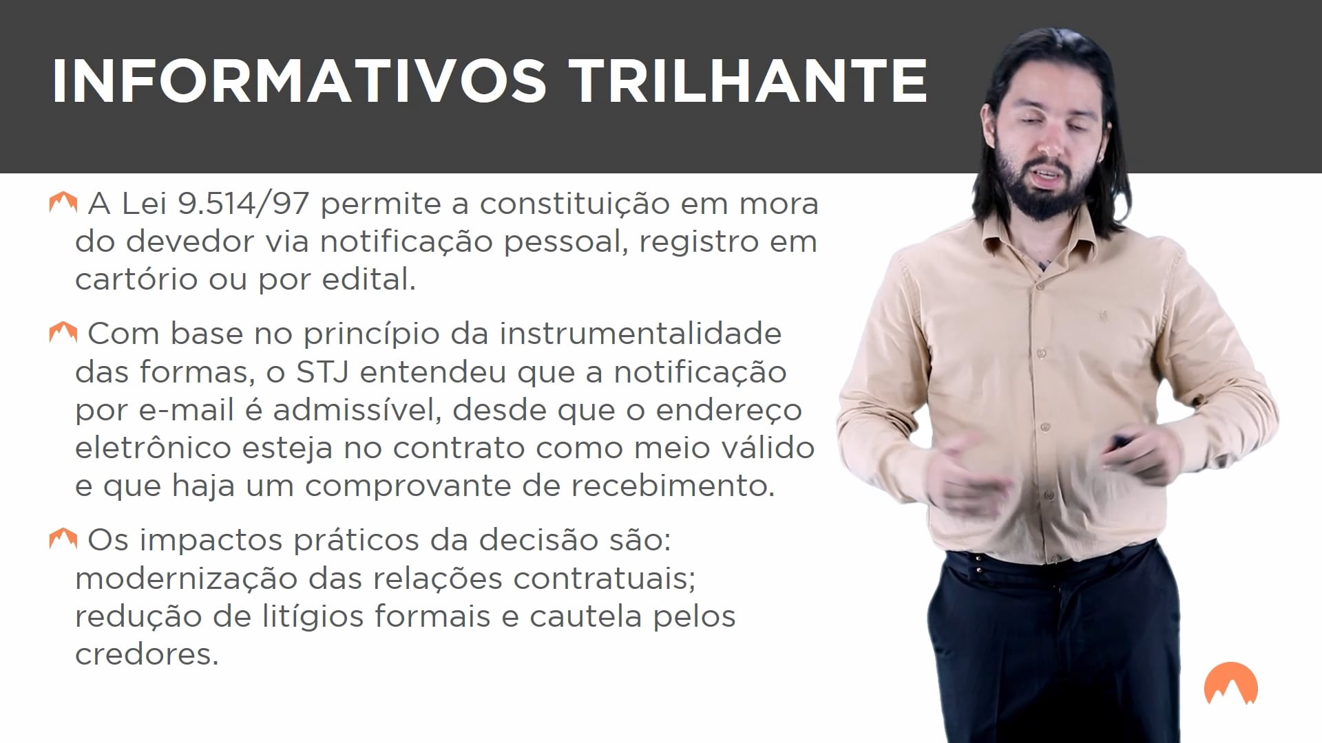 Destaca-se, nesse ponto, o princípio da instrumentalidade das formas. Considerando que a finalidade essencial da notificação é proporcionar ao devedor a plena ciência de sua inadimplência, alcançada tal finalidade por meio eletrônico com comprovação de recebimento, não há falar em nulidade ou insuficiência do ato.