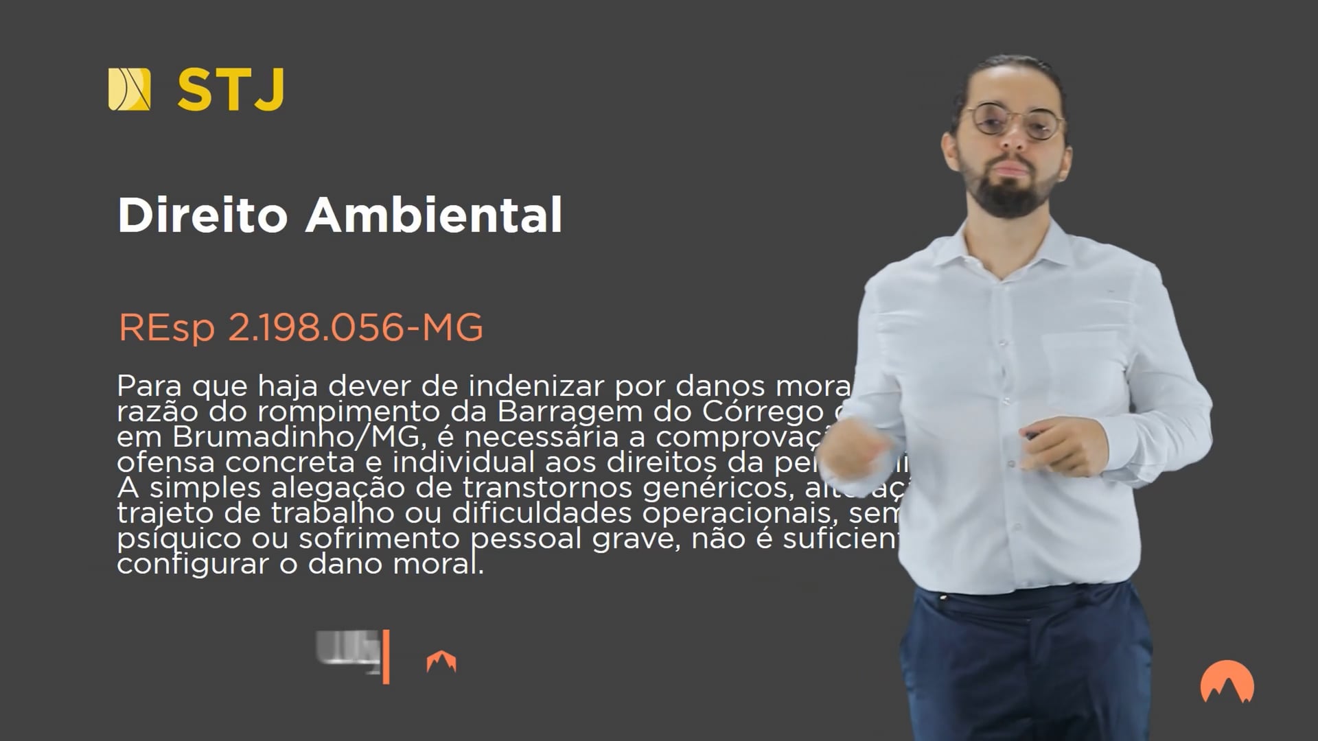 Para que se configure o dever de indenizar por danos morais em razão do rompimento da Barragem do Córrego do Feijão, em Brumadinho/MG, a pessoa que se sentiu afetada pelo acidente ocorrido deve comprovar, concretamente, ter havido ofensa, em caráter individual, aos seus direitos da personalidade, mediante demonstração de abalo psíquico, perturbação emocional relevante ou sofrimento pessoal grave, não sendo suficiente a mera alegação de transtornos genéricos devido ao aumento do percurso de trabalho como motorista profissional e à precariedade das vias de acesso durante cerca de dois meses.