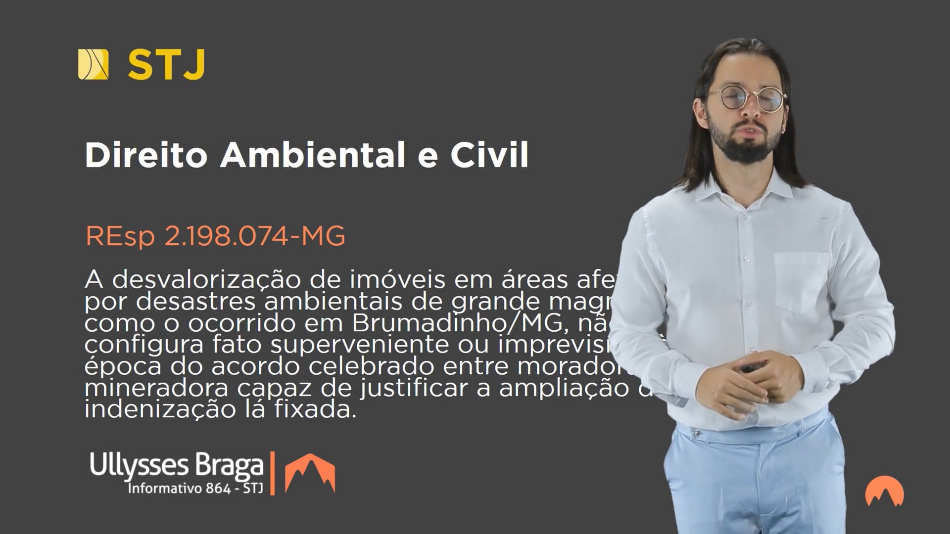Com efeito, a desvalorização de imóveis em regiões atingidas por desastres ambientais de grande porte é um efeito natural e previsível de tais eventos. No momento da celebração do acordo, a autora já sabia que seu imóvel tinha perdido valor de mercado, uma vez que a tragédia de Brumadinho teve repercussão nacional e internacional, impactando diretamente a percepção de risco e a atratividade econômica da região. Nesse contexto, a indenização por danos materiais concedida à prejudicada apenas poderia ser ampliada se ela tivesse comprovado superveniente prejuízo material efetivo e diretamente decorrente do desastre, como, por exemplo, se tivesse perdido negócio de venda já contratado ou tido que aceitar a alienação por valor inferior, vale dizer, se tivesse demonstrado perda patrimonial concreta.