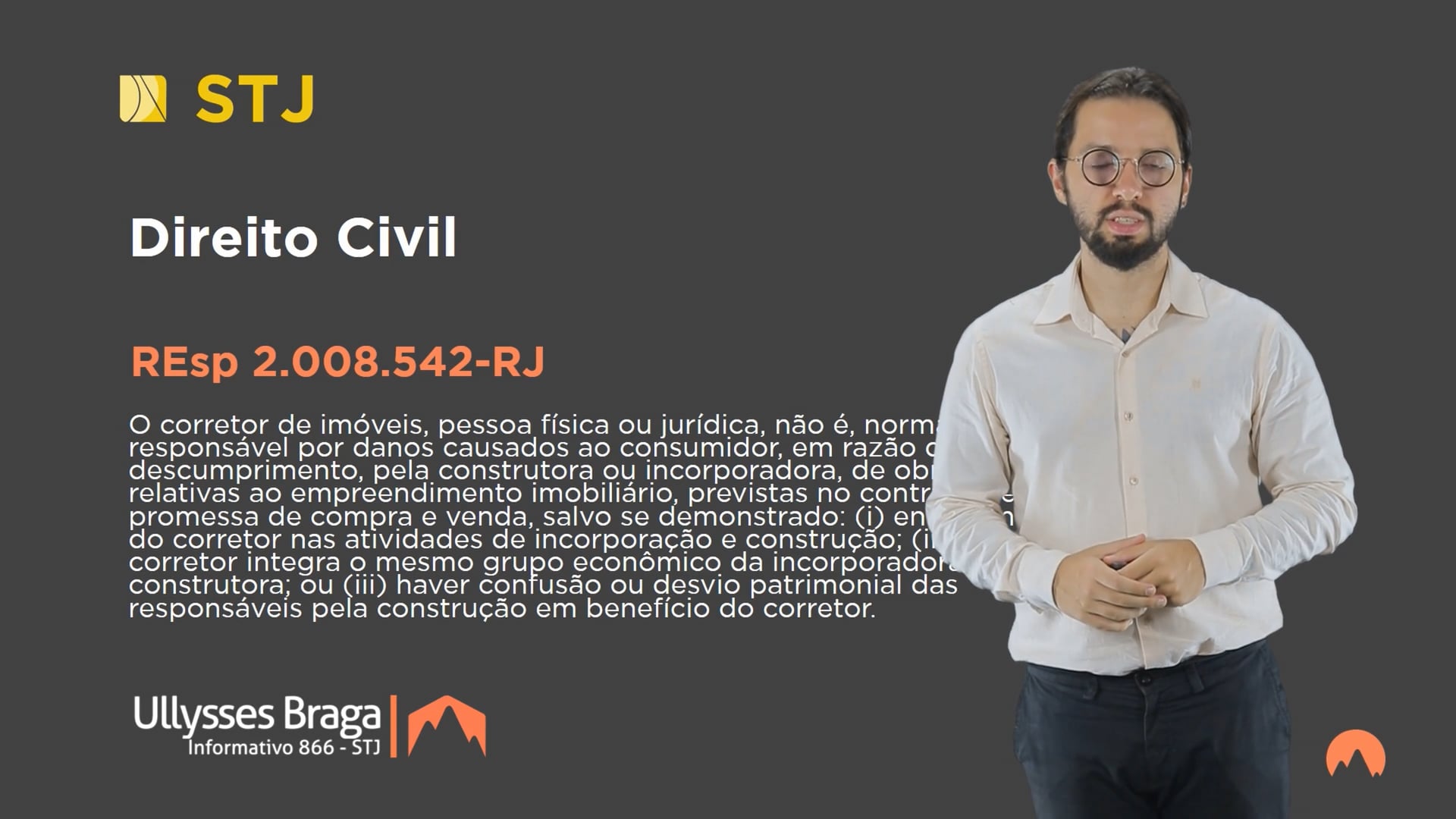 Ante o exposto, fixa-se a seguinte tese do Tema Repetitivo 1173/STJ: O corretor de imóveis, pessoa física ou jurídica, não é, normalmente, responsável por danos causados ao consumidor, em razão do descumprimento, pela construtora ou incorporadora, de obrigações relativas ao empreendimento imobiliário, previstas no contrato de promessa de compra e venda, salvo se demonstrado: (i) envolvimento do corretor nas atividades de incorporação e construção; (ii) que o corretor integra o mesmo grupo econômico da incorporadora ou construtora; ou (iii) haver confusão ou desvio patrimonial das responsáveis pela construção em benefício do corretor.