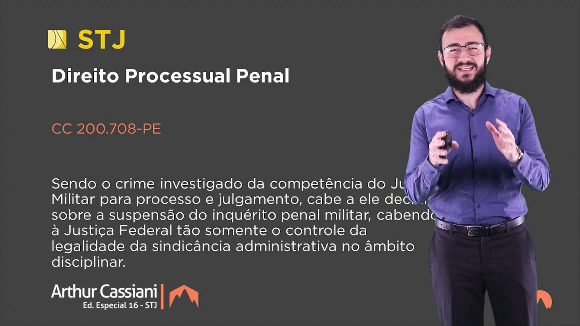 Todavia, se o crime investigado é da competência do Juízo Militar para processo e julgamento, cabe a ele decidir sobre a suspensão do inquérito penal militar. Assim, a persecução penal não pode ser suspensa por determinação da Justiça Federal, a quem compete tão somente o controle da legalidade da sindicância administrativa, no âmbito disciplinar.