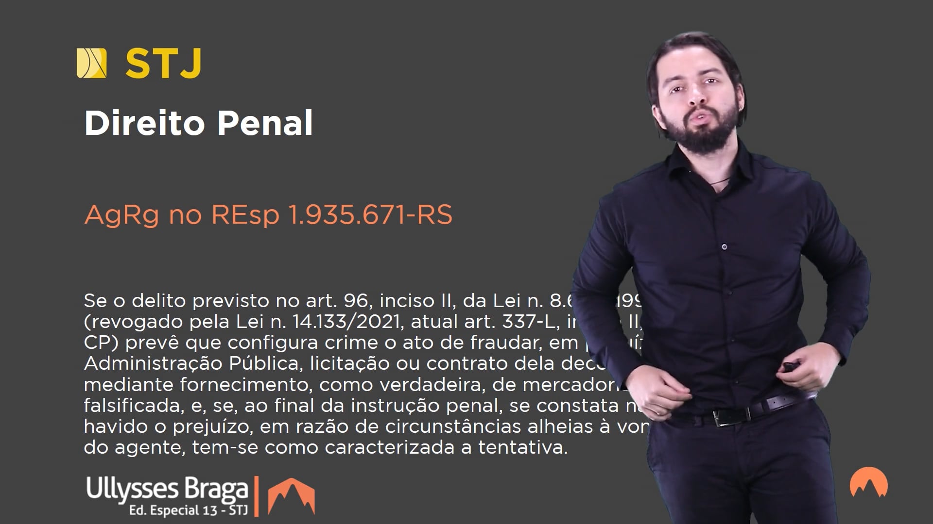O delito previsto no art. 96, inciso II, da Lei n. 8.666/93 (revogado pela Lei n. 14.133/2021, atual art. 337-L, inciso II, do CP) prevê que configura crime o ato de fraudar, em prejuízo da Administração Pública, licitação ou contrato dela decorrente, mediante fornecimento, como verdadeira, de mercadoria falsificada, e, se, ao final da instrução penal, se constata não ter havido o prejuízo, em razão de circunstâncias alheias à vontade do agente, tem-se como caracterizada a tentativa. De fato, a norma penal, em regra, descreve uma conduta proibida na forma consumada, sendo necessária a aplicação do art. 14, inciso II, do Código Penal, para o reconhecimento da tentativa.