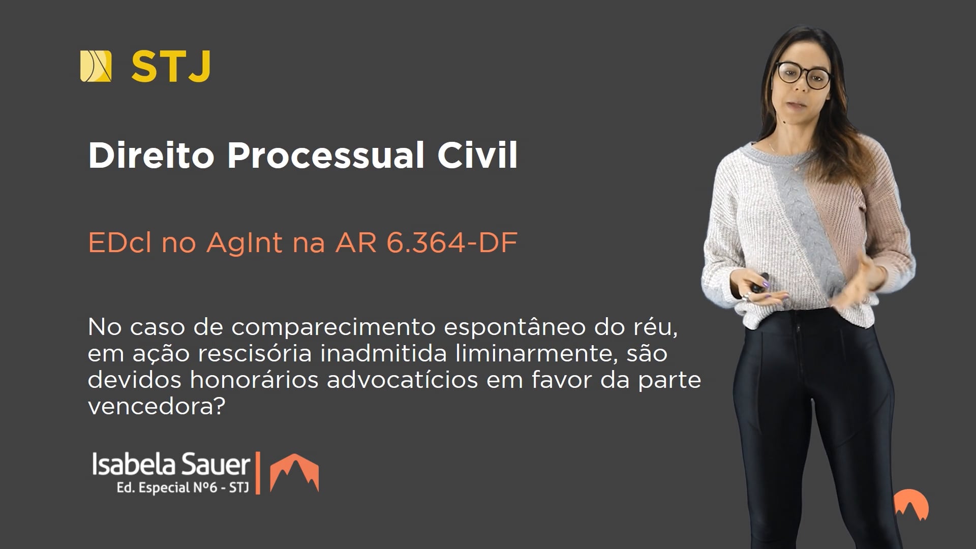 A controvérsia consiste em definir se são devidos honorários advocatícios em ação rescisória, liminarmente inadmitida, na qual há comparecimento espontâneo do réu que, apesar de não ter sido intimado, apresentou impugnação ao agravo interno e restou vencedor na demanda.
