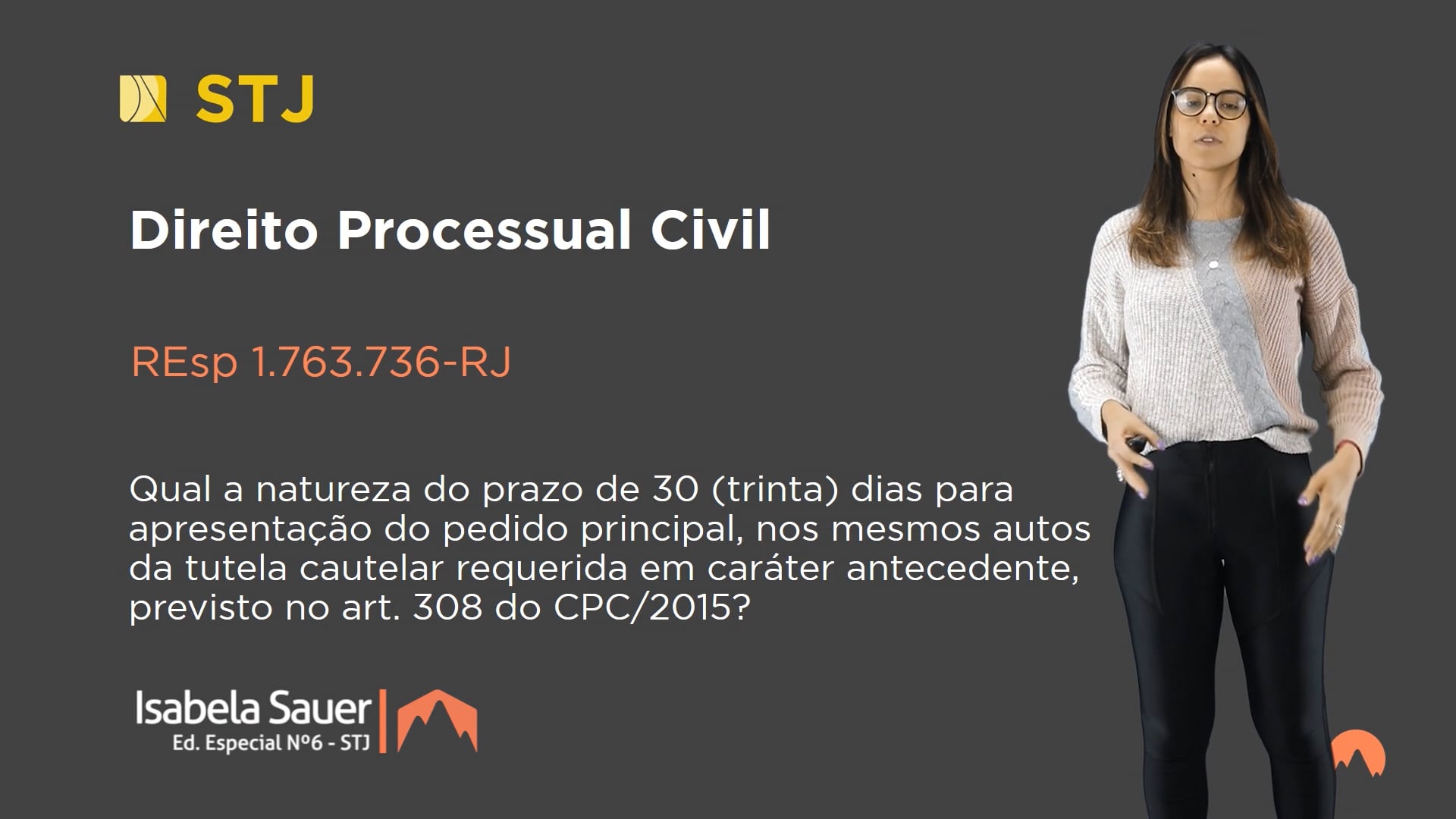 A controvérsia cinge-se à natureza jurídica do prazo de 30 (trinta) dias para apresentação do pedido principal, nos mesmos autos da tutela cautelar requerida em caráter antecedente, prevista no art. 308 do CPC/2015.