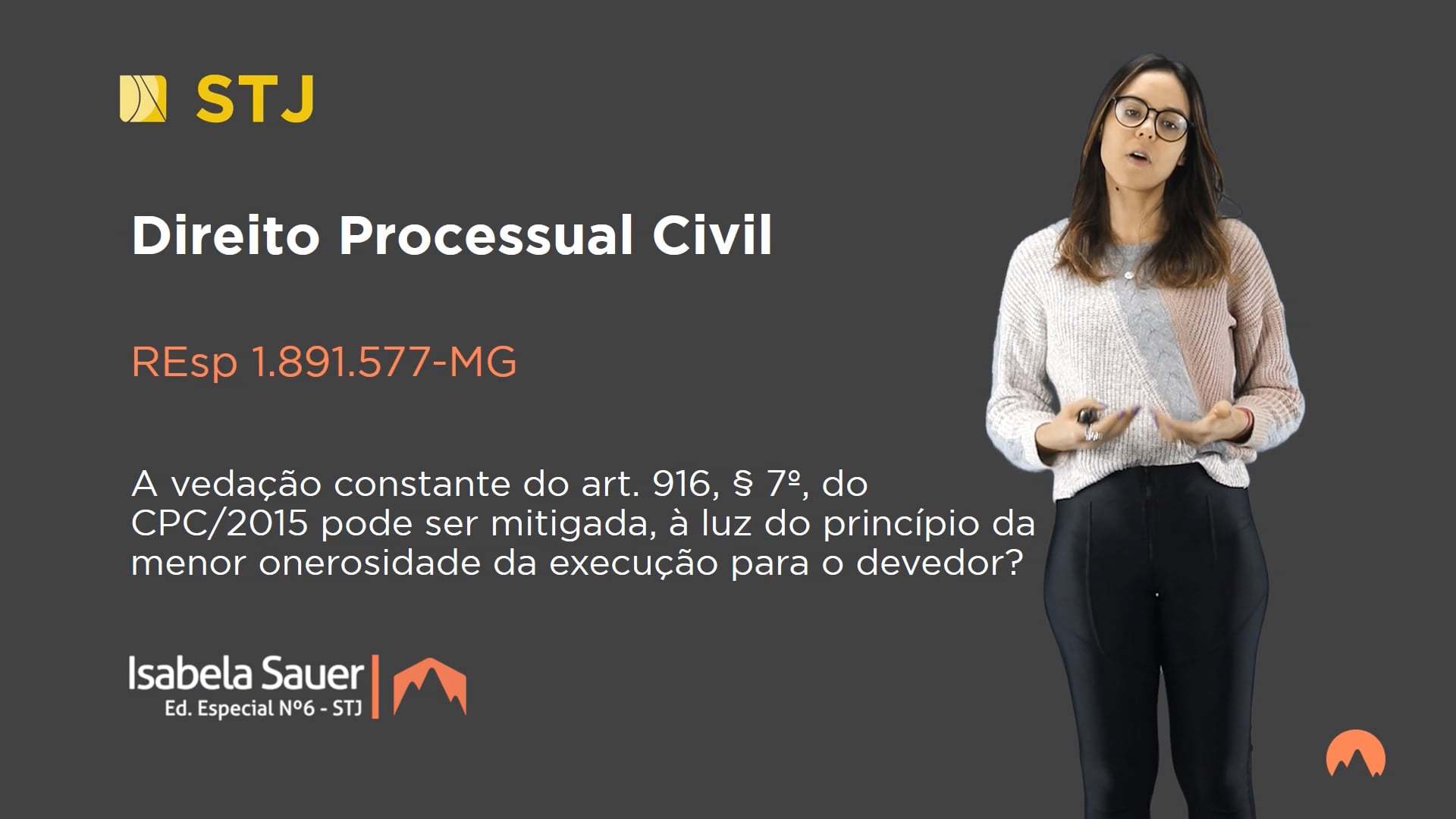 A controvérsia consiste em definir se a vedação constante do art. 916, § 7º, do CPC/2015 - que obsta a aplicação da regra de parcelamento do crédito exequendo ao cumprimento de sentença - pode ser mitigada, à luz do princípio da menor onerosidade da execução para o devedor.