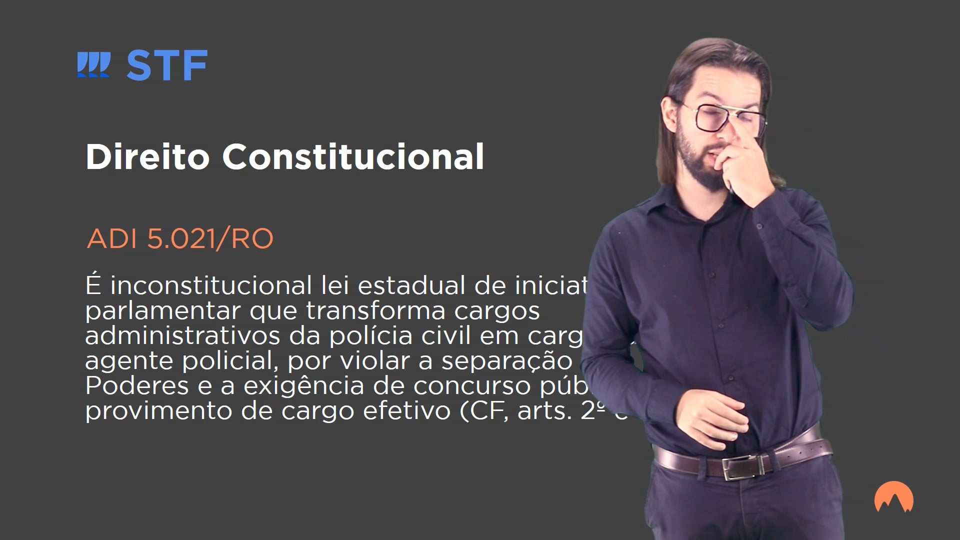 É inconstitucional lei estadual de iniciativa parlamentar que transforma cargos administrativos da polícia civil em cargos de agente policial, por violar a separação dos Poderes e a exigência de concurso público para provimento de cargo efetivo (CF, arts. 2º e 37, II).