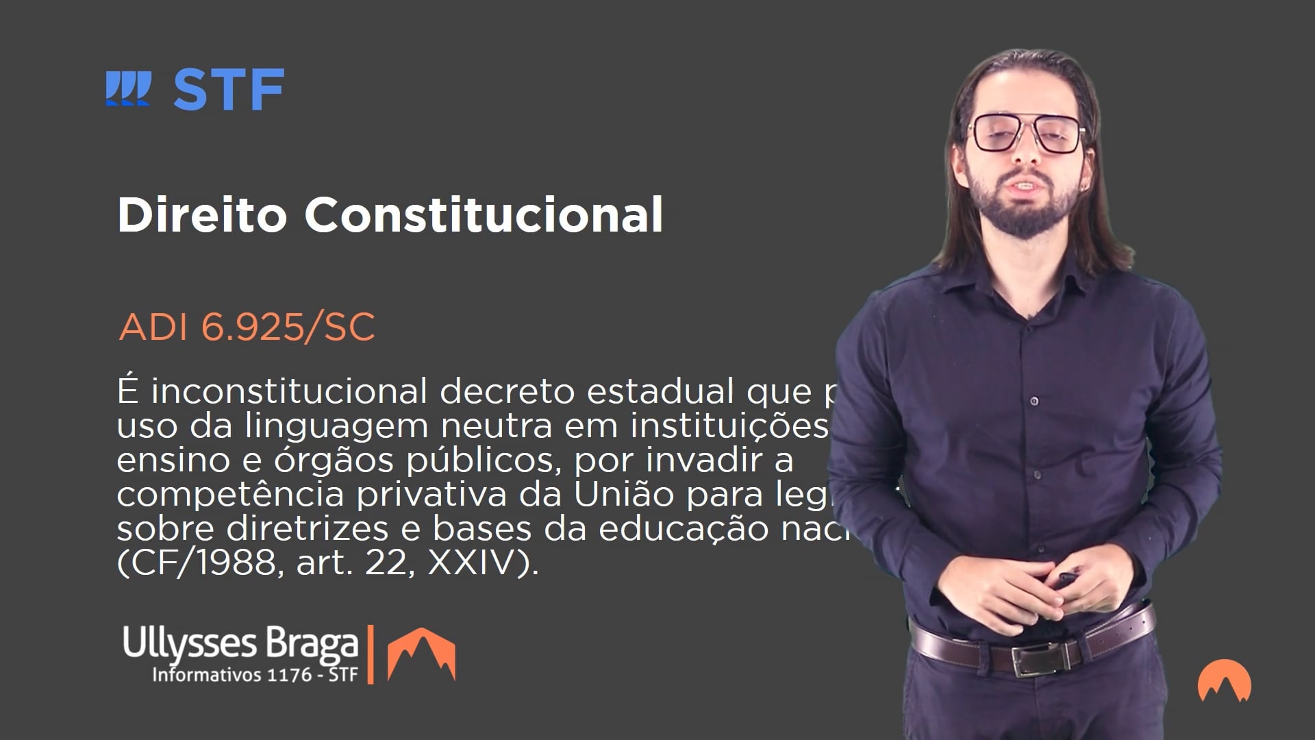 É inconstitucional decreto estadual que proíbe o uso da linguagem neutra em instituições de ensino e órgãos públicos, por invadir a competência privativa da União para legislar sobre diretrizes e bases da educação nacional (CF/1988, art. 22, XXIV).