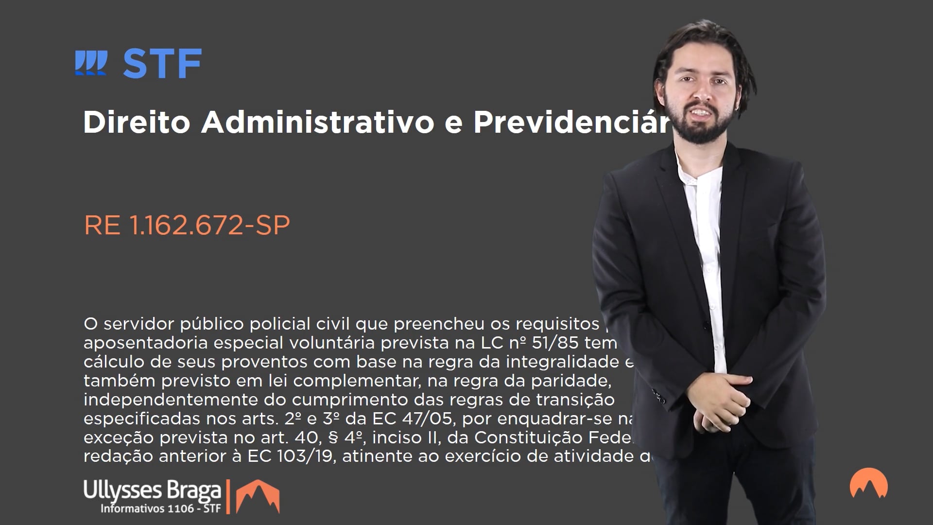 O servidor público policial civil que preencheu os requisitos para a aposentadoria especial voluntária prevista na LC nº 51/85 tem direito ao cálculo de seus proventos com base na regra da integralidade e, quando também previsto em lei complementar, na regra da paridade, independentemente do cumprimento das regras de transição especificadas nos arts. 2º e 3º da EC 47/05, por enquadrar-se na exceção prevista no art. 40, § 4º, inciso II, da Constituição Federal, na redação anterior à EC 103/19, atinente ao exercício de atividade de risco.