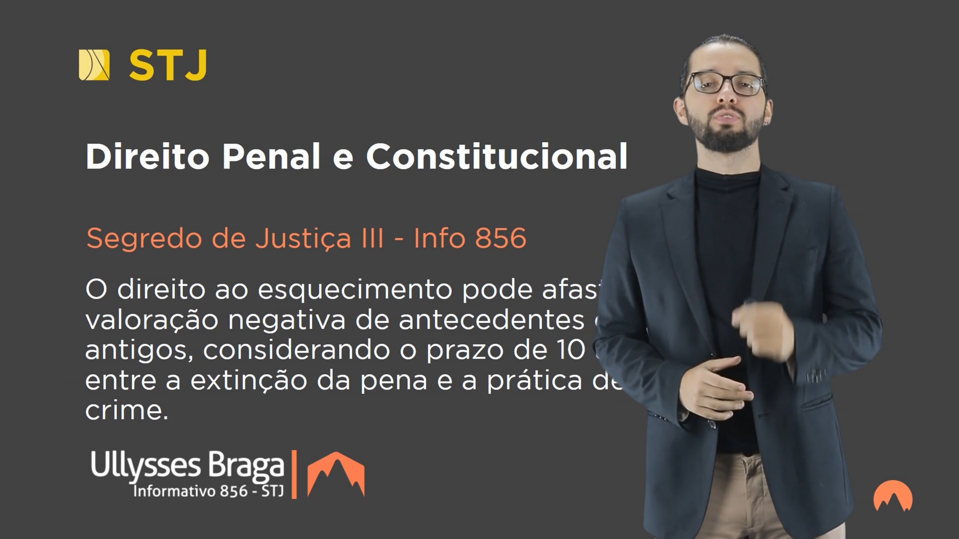 Dessa forma, o direito ao esquecimento pode ser aplicado e o cômputo do prazo (10 anos) para a sua aplicação, em relação aos antecedentes, é realizado entre extinção da pena anteriormente imposta e a prática do novo delito.
