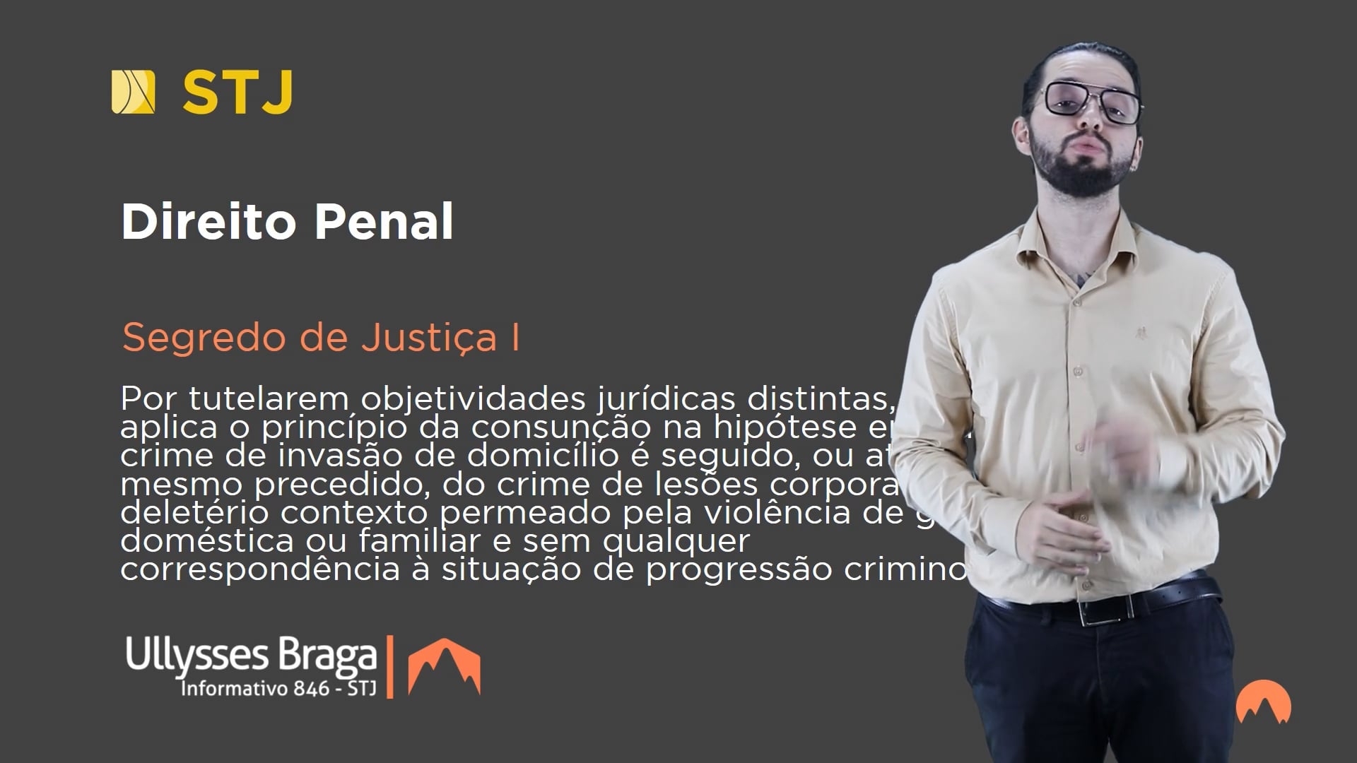 Nesse sentido, já decidiu a Quinta Turma do STJ que "É inviável o reconhecimento da consunção entre o delito de violação de domicílio e o de lesão corporal no âmbito doméstico quando um não constitui meio para a execução do outro, mas evidentes infrações penais autônomas, que tutelam bens jurídicos distintos (AgRg no REsp n. 1.902.294/SP, relator Ministro Ribeiro Dantas, Quinta Turma, julgado em 2/3/2021, DJe de 8/3/2021).