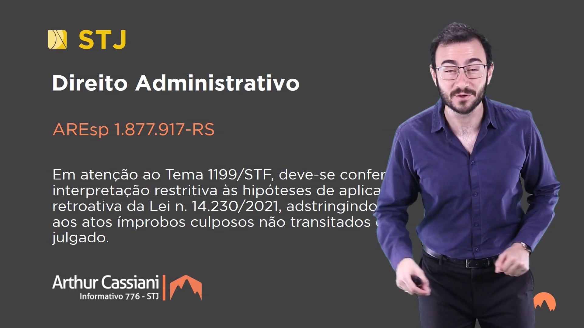 Recentemente, a Primeira Turma do STJ, por maioria, no julgamento do AREsp 2.031.414/MG, Rel. Ministro Gurgel de Faria, realizado em 9/5/2023, o qual discutia a aplicabilidade dos §§ 1º e 2º do art. 21 da Lei n. 8.429/1992, introduzidos pela Lei n. 14.230/2021, aos processos de improbidade administrativa em curso, seguindo a divergência apresentada pela Ministra Regina Helena Costa, firmou orientação no sentido de conferir interpretação restritiva às hipóteses de aplicação retroativa da Lei n. 14.230/2021, se aplicando apenas aos atos ímprobos culposos não transitados em julgado.