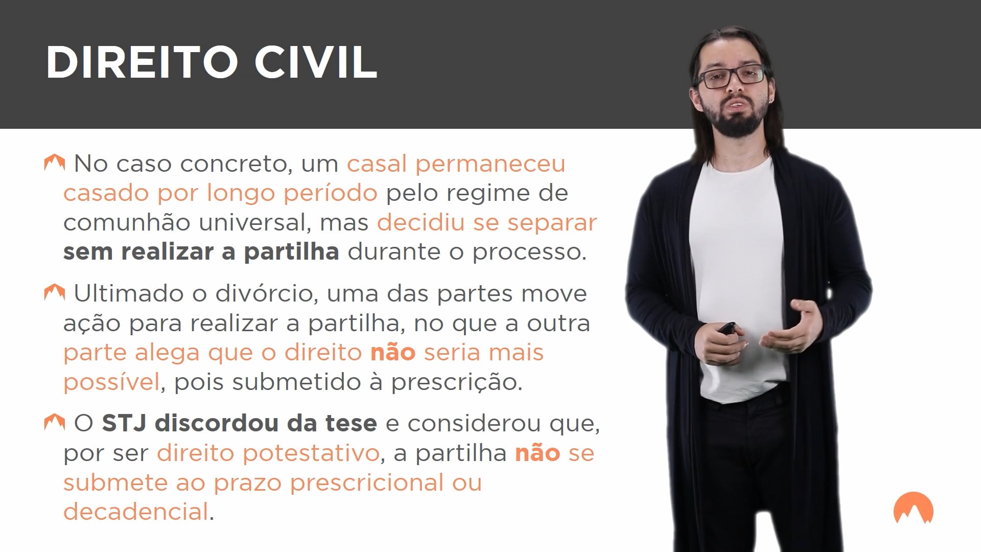 De fato, a partilha consubstancia direito potestativo dos ex-cônjuges, na medida em que traduz o direito de dissolver uma universalidade de bens e, portanto, de modificar ou extinguir uma situação jurídica, independentemente da conduta ou vontade do outro sujeito integrante desta relação (sujeito passivo).