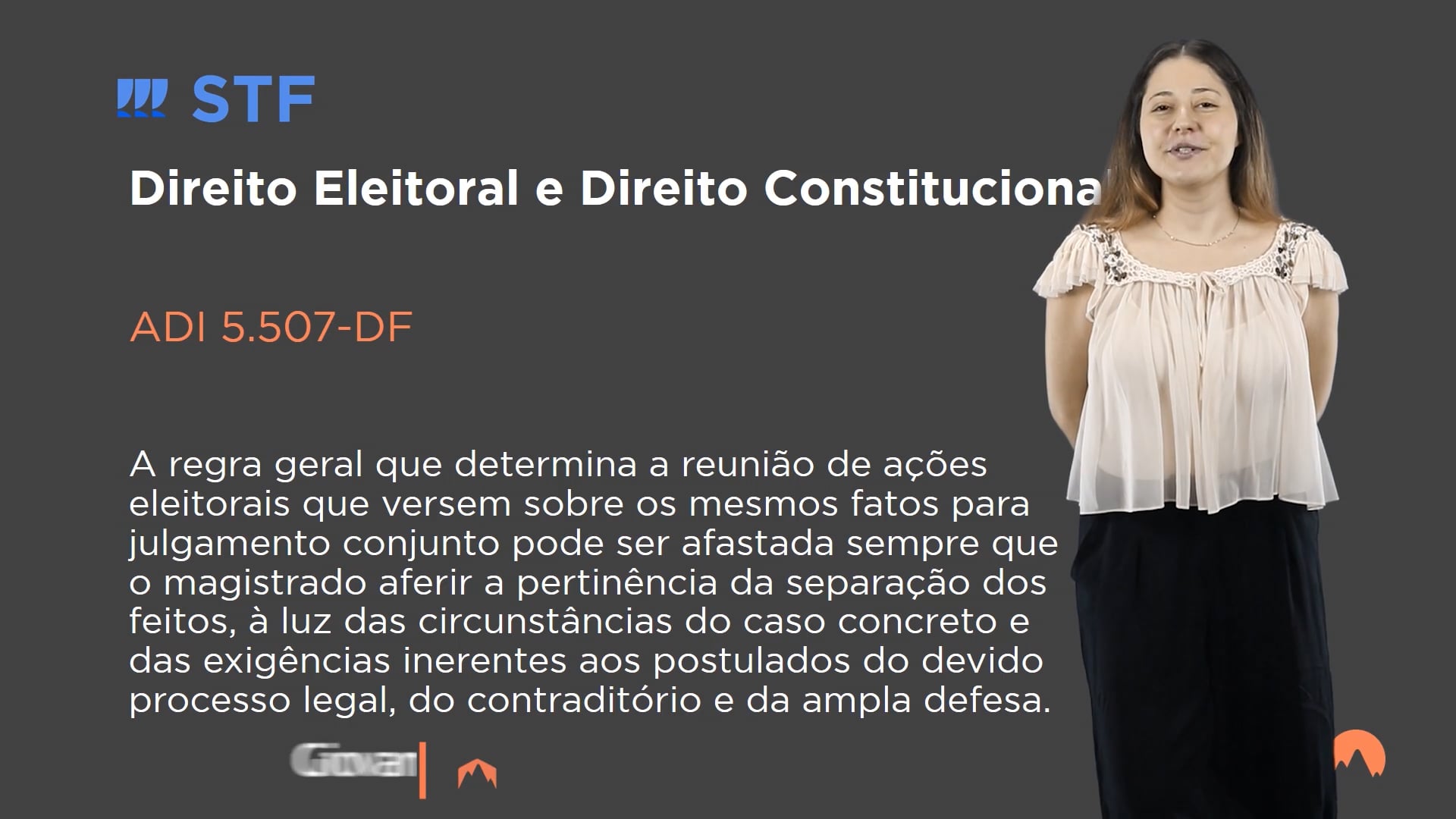 Com base nesses entendimentos, o Plenário, por maioria, julgou parcialmente procedente a ação para conferir interpretação conforme ao § 2º do art. 96-B da Lei 9.504/1997, acrescentado pelo art. 2º da Lei 13.165/2015, no sentido de que a regra geral de reunião dos processos pode ser afastada, no caso concreto, sempre que a celeridade, a duração razoável do processo, o bom andamento da marcha processual, o contraditório e a ampla defesa, a organicidade dos julgamentos e o relevante interesse público envolvido recomendem a separação dos feitos.