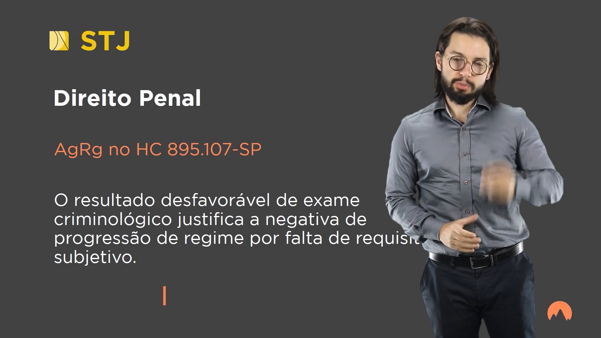 Conforme a jurisprudência desta Corte, "o resultado desfavorável de exame criminológico justifica a negativa de progressão de regime por falta de requisito subjetivo" (AgRg no HC 848.737/SP, relator Ministro Rogerio Schietti Cruz, Sexta Turma, DJe de 5/10/2023).