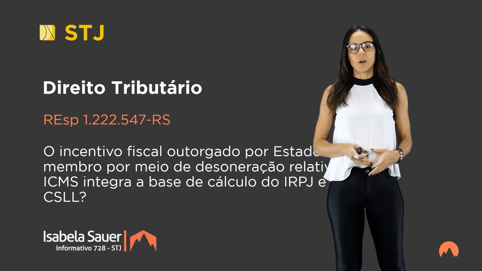 Porém, no que toca à inclusão do crédito presumido de ICMS na base de cálculo do IRPJ e CSLL, a Primeira Seção deste Superior Tribunal de Justiça, ao julgar o EREsp n. 1.443.771/RS, assentou que o crédito presumido de ICMS, a par de não se incorporar ao patrimônio da contribuinte, não constitui lucro, base imponível do IRPJ e da CSLL, sob o entendimento segundo o qual a concessão de incentivo por ente federado, observados os requisitos legais, configura instrumento legítimo de política fiscal para materialização da autonomia consagrada pelo modelo federativo. Axiologia da ratio decidendi que afasta, igualmente, a pretensão de caracterização, como renda ou lucro, de montante outorgado no contexto de incentivo fiscal relativo ao ICMS.