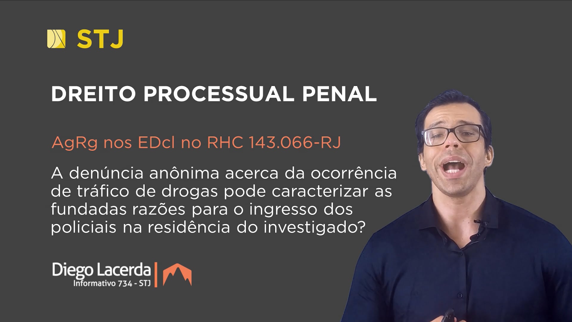 A denúncia anônima acerca da ocorrência de tráfico de drogas acompanhada das diligências para a constatação da veracidade das informações prévias podem caracterizar as fundadas razões para o ingresso dos policiais na residência do investigado.